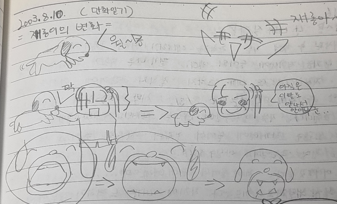 재롱 이를 설명해주는 만화일기이가 나는 중이라