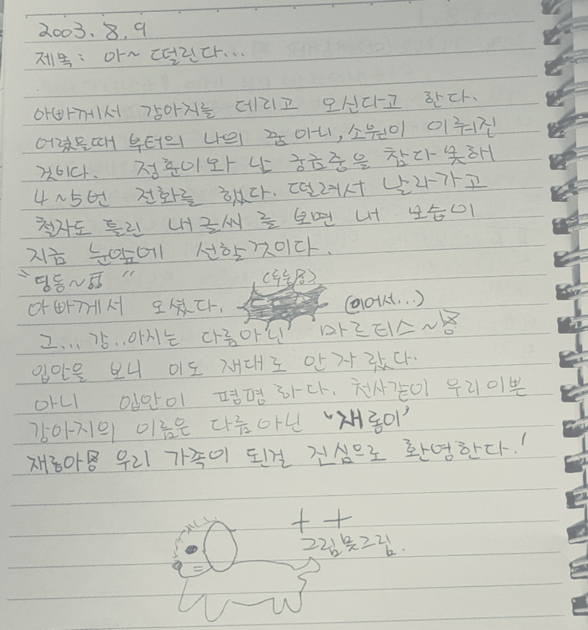 재롱이와 만나기 직전 설렘 가득한 첫 번째 일기