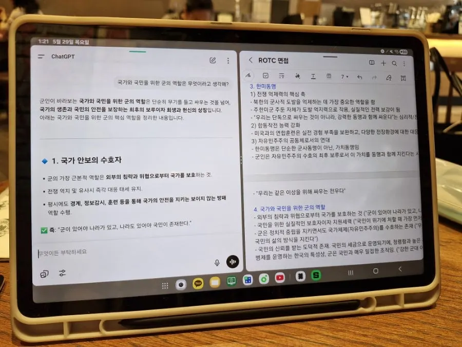 위에 써놓은것처럼 이날 피뽑고 검사하고 난 다음에 카페에서 지피티와 함께 면접준비를 했다. 어차피 엄청난 개소리를 하지 않는 이상 면접은 다 통과일테니,,, 선배님이 받았던 질문같은거랑 학군단 면접공지에 나온 질문들만 가볍게 생각해갔다