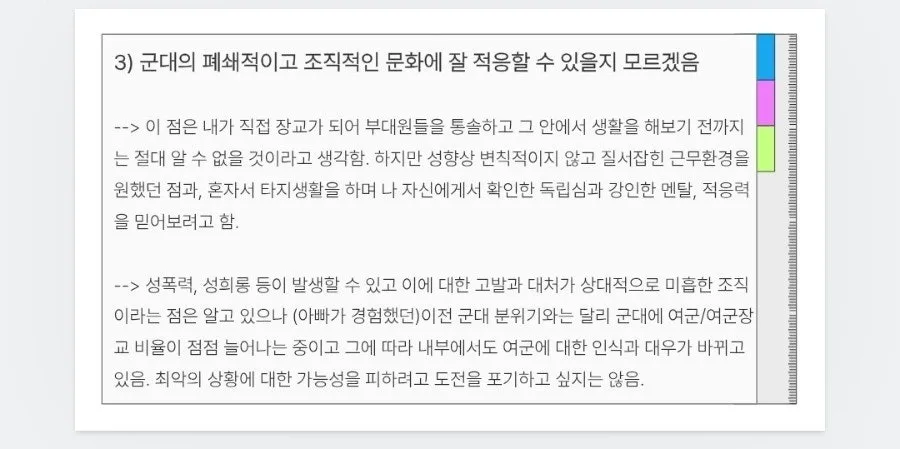 고등학교 3년내내 학종러 생활+ 대학 면접 3개를 봐본 나같은 경우에는 ROTC면접?같은건 전혀 걱정이 안됐다......대학 입학 면접보다 더하겠냐고ㅎㅎ