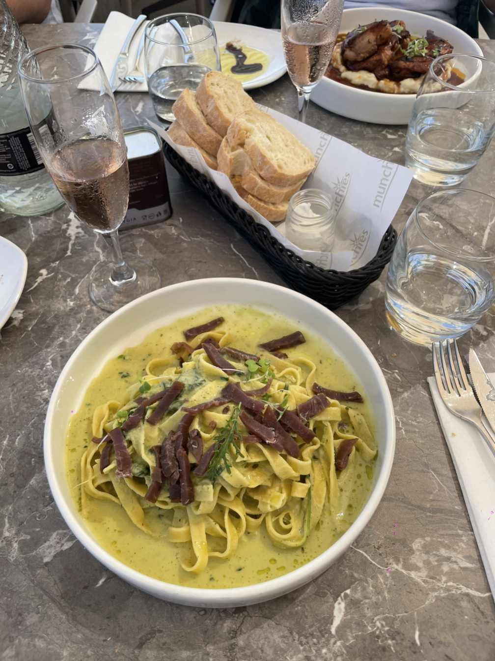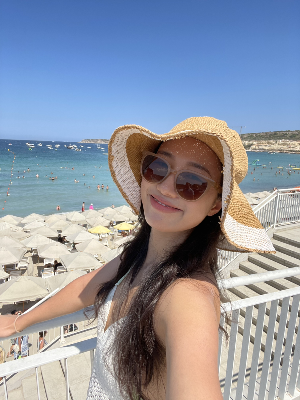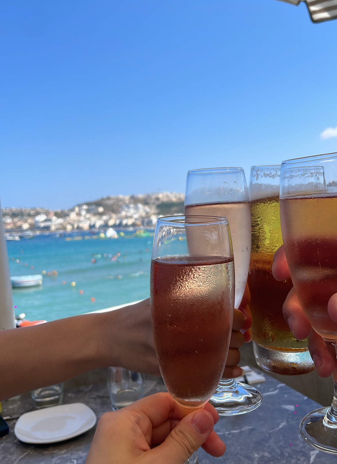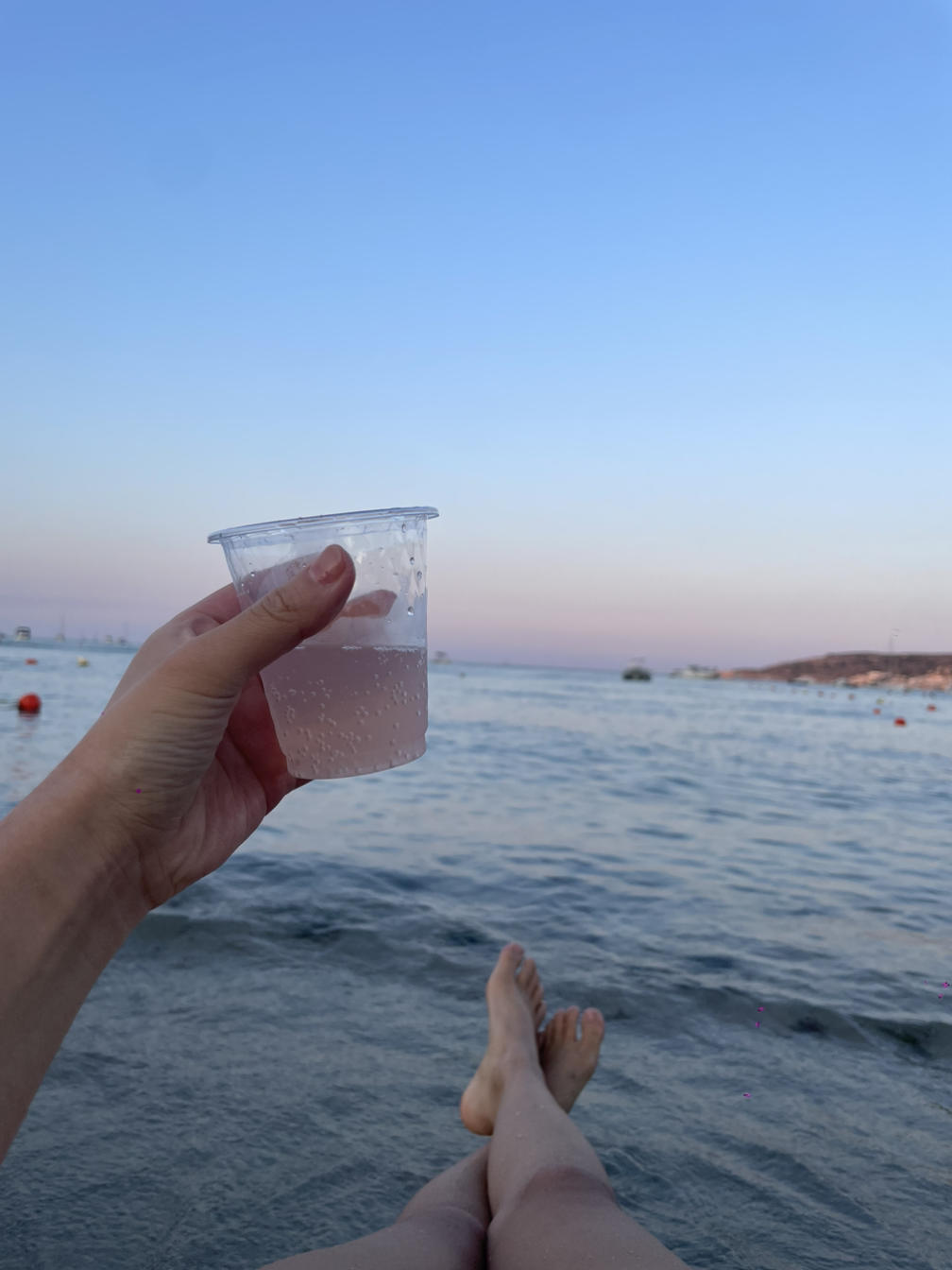 점심으로 이탈리안 음식에 몰티즈 로제 스파클링 와인을 곁들어 마셨다. 오후 느즈막했는데도 햇볕이 쨍쨍했다. 여름 유럽의 낮은 길다. 찍고 싶었던 트와이스 this is for 춤 인스타그램 릴스를 필리피노 크루에게 찍어 달라고 해서 급 찍고 자리를 잡고 바다로 들어갔다.