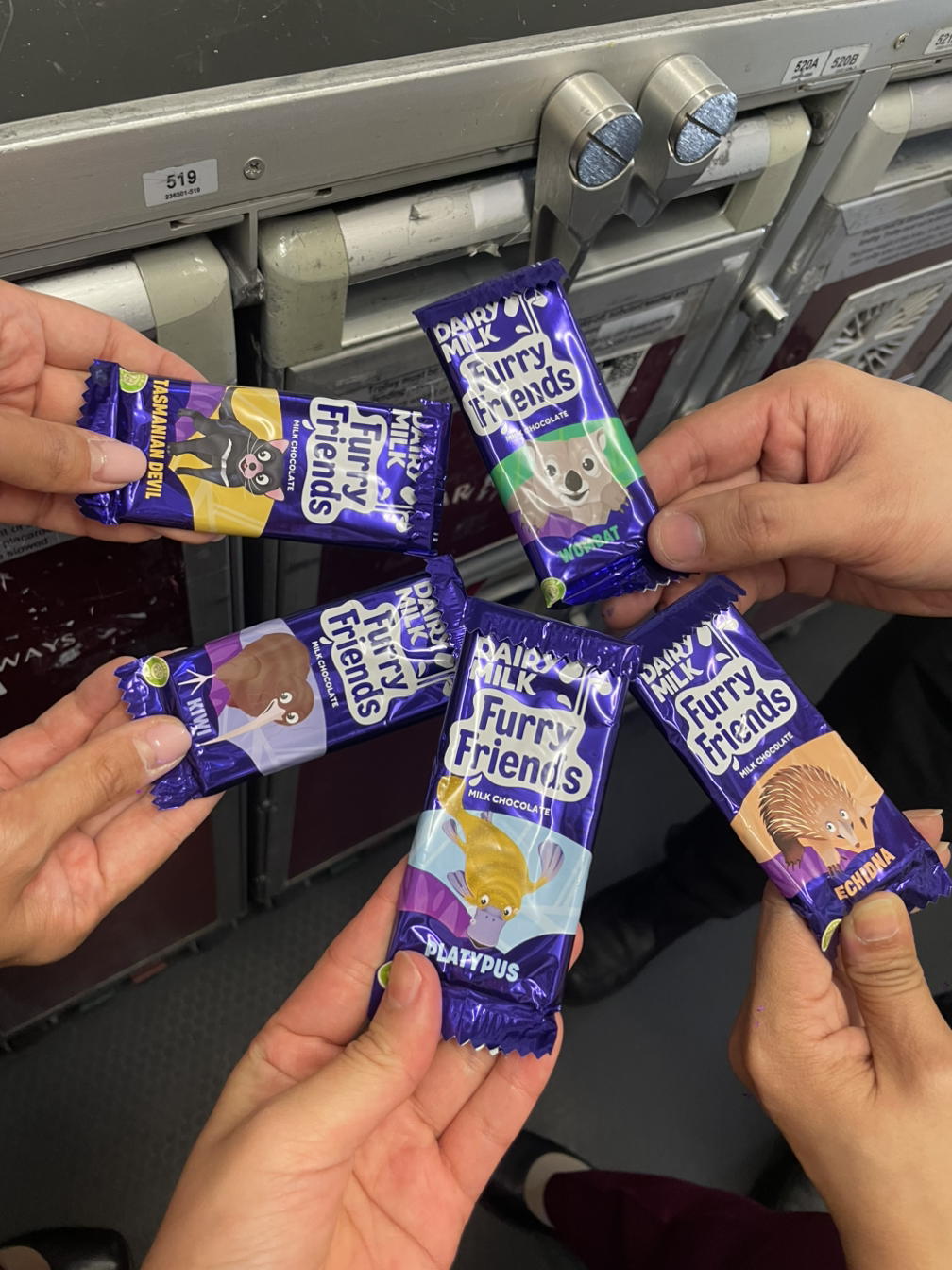 돌아오는 비행은 L4로 이코노미 총괄담당이었다. 오랜만에 이코노미에서 일을 해봐서 꽤나 재밌었다. 퍼스에서 온 호주 승객들이 호주 동물들이 그려진 초콜릿을 선물로 주셨다. 이코노미에서 일을 할 때 승객들에게 감동이고 귀여운 선물들을 많이 받는다. 그런 작은 선물들에게 그들의 넓은 마음이 느껴진다. 그런 분들은 오히려 더 챙겨드리고 싶은 마음이다. 비즈니스 클래스에서 초콜릿과 야자대추와 볼펜을 가져와 선물로 드렸다. 주신 초콜릿들 크루들과 동물 하나씩 나눠가졌고 덕분에 에너지를 얻어 비행을 할 수 있게 되어 감사하다고 퍼스까지 안전히 가시라고 인사했다.