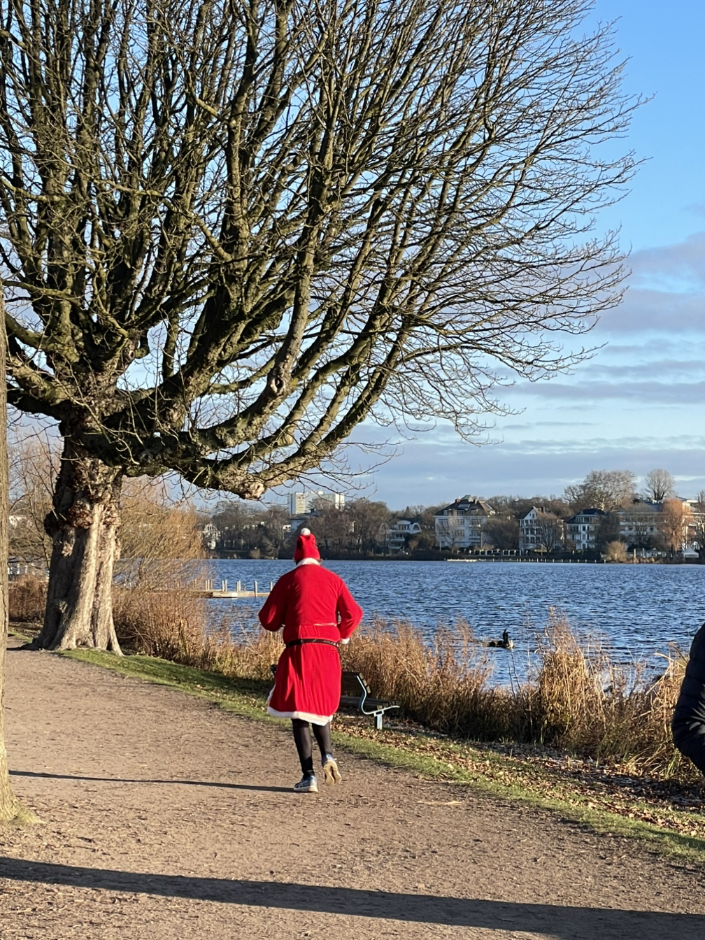 쇼핑도 하고 장을 보고 호텔로 돌아왔다. 다음날 아침엔 근처 강을 따라 8km의 겨울 러닝을 했다. 크리스마스이브여서 그런지 산타 러너를 세 명이나 봤다. 한 분은 옷 전체를 산타처럼 나머지 두 명은 산타 모자를 쓰고 러닝을 했다. 독일은 24, 25일 대부분의 음식점 카페 상점이 닫거나 짧은 시간만 운영을 한다. 돌아오는 길 독일 소시지를 굽는 크리스마스 마켓을 발견해 브랏와스트 bratwurst 독일 하얀 소시지를 하나 먹었다. 디엠 dm(독일의 올리브영)과 약국을 들러 오소몰 비타민과 핸드크림 등 필요한 것들을 사고 호텔로 돌아왔다.