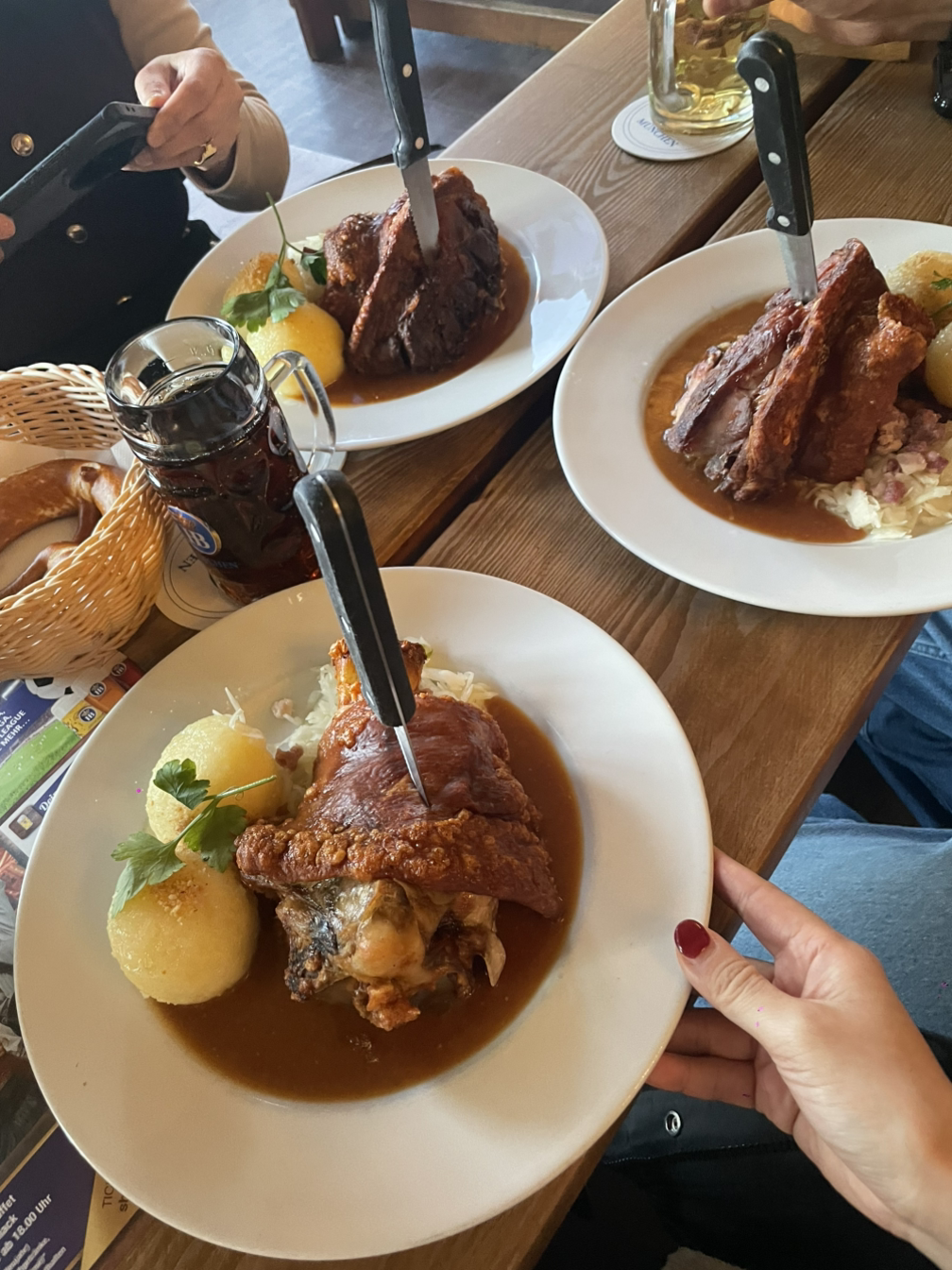 대부분의 크루들은 같이 비딩 해서 온 친구들 아니면 현지에 친구나 가족이 있었다. 나도 친구와 요청했는데 혼자 받았다. 사무장, 부사무장, 같이 데드헤딩을 한 크루와 같이 오후 3시에 만나 점심을 먹고 크리스마스 마켓을 가기로 했다. 다 같이 만나 호프브루에서 슈바이학센(독일 족발 튀김요리)도 먹었다. 크리스마켓을 가서 구경을 하며 간식들도 먹고 난 꿀과 접시를 샀다. 예전엔 디저트나 뮬드와인도 마셨지만 이날은 금주를 했다.