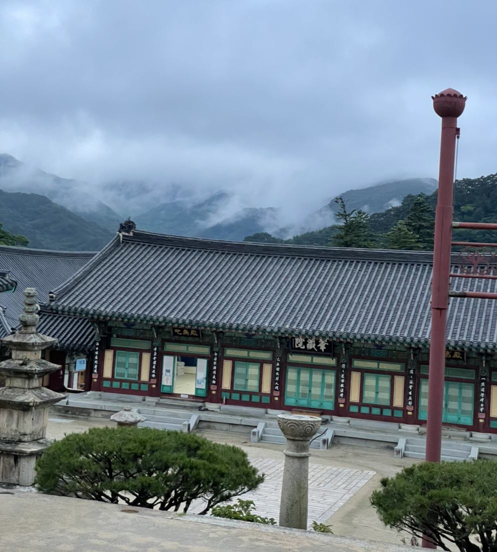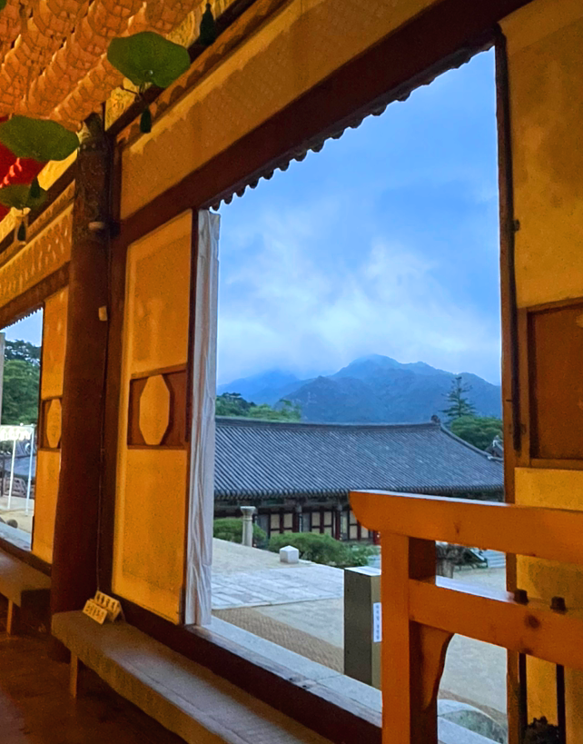서서 얘기를 하다 스님은 함께 차를 마시자고 했고 초대된 곳은 아까 궁금했던 외부인 출입 금지라고 써진 곳이었다. 아름다운 한옥 안에는 해인사 경치와 안개 낀 산이 보였다. 그 안에서 과일을 내주시는 스님도 있어 신기했다. 스님과 차 한 잔을 마시며 삶과 인생의 이야기를 주고받았다. 다르지만 비슷한 삶의 이야기. 스님도 사람이고 절 생활 또한 삶이었다. 그 안에서 불교 공부를 열심히 하는 사람도 있고 산통을 깨는 사람도 있고. ‘산통 깨다’라는 표현을 처음 배웠는데 대나무 통에 번호를 넣고 뽑는 거라고 하셨다. 번호를 뽑힌 스님이 경전 내용 중 주제를 정해 토론을 한다고 했다.