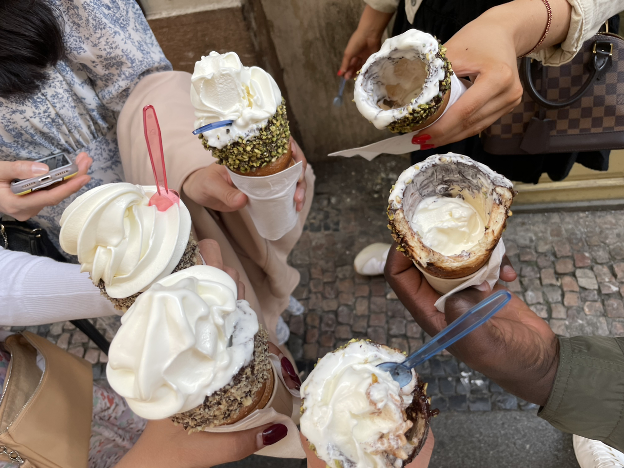 도착해서 다 함께 거리를 거느리며 랜딩 디저트로 체코에서 유명한 Trdlo 뜨르들로(굴뚝 빵)를 먹었다. 갓 구워진 뜨르들로에 초콜릿을 찍어 피스타치오를 바르고 조린 사과를 넣고 아이스크림으로 채워진다. 다들 입가에 초콜릿이 묻었는지도 모른 채로 맛있게 먹었다. 그리고 찰스 브리지로 향했다. 아름다운 다리에서 다들 인생 샷도 건진 후 쇼핑도 하고 저녁을 먹으로 들어갔다. 그런데 신용카드를 받지 않는다는 것이었다. 유로로 낼 수는 있지만 모두에게 충분한 유로가 없었다. 맥주만 마시고 저녁은 다른 곳으로 가기로 했다. 맥주는 부기장님이 beer is on me를 외치며 쏘셨다. 우린 체코 음식점을 가 저녁을 먹고 호텔로 돌아왔다. 난 호텔로 돌아와 샤워 후 뻗었다. 카사블랑카의 피로가 풀리지도 않은 채 프라하를 돌아다녀 크루들끼리 애프터 파티를 할 기력조차 없었다. Rain check!