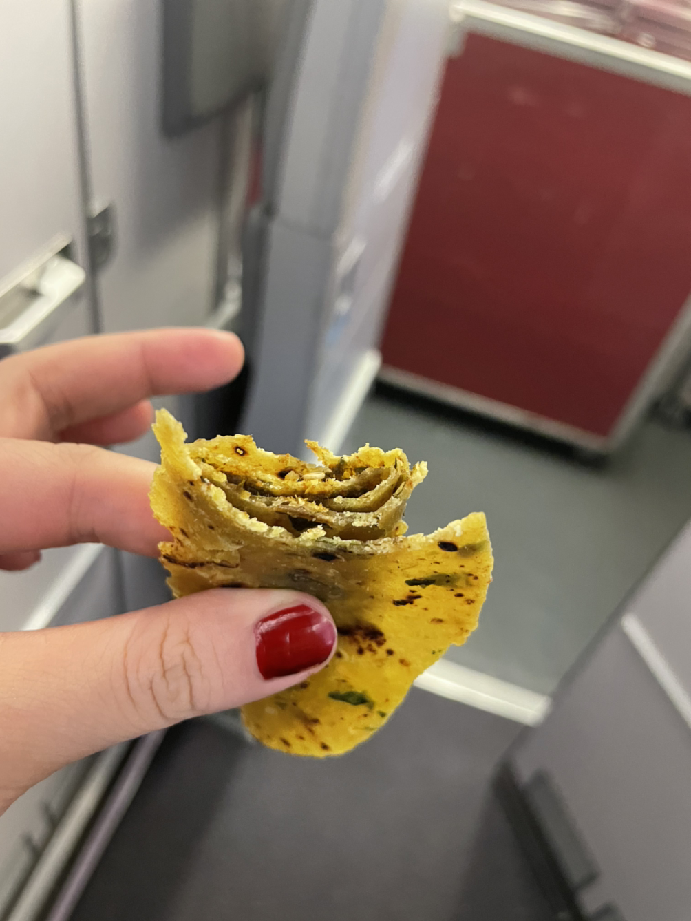 체코를 가는 길.. 40명의 인도인 단체 여행 그룹이 탔다. 비행기가 관광버스 느낌으로 변했다. 탑승하자마자 싸온 인도 음식들을 먹으며 자리를 옮기고 일어서서 서로 신나게 얘기를 하고 있었다. 보딩 중에 이미 마실 것들 요청도 엄청나게 하였다. 후... 인도 비행인가요. 분명 유럽 가는 길인데. 인도 아주머니는 나에게 Hot water 요청을 하였고 난 따뜻한 물을 가져다주었다. 먹고 있던 자신이 직접 만들었다는 코리안다(coriander, 고수)와 그린칠리로 만들었다는 차트니(chutney, 인도식 소스)를 난에 발라 하나를 싸 나에게 먹으라고 주었다. 강한 향이지만 정신과 입맛이 확 돌고 맛있었다. 맛있다고 하니 하나 더 싸준다고 하지만 괜찮다고 하였다. 이렇게 시끄럽고 디맨딩한 인도 승객들에 이너피스가 유지 안 될 뻔했다가도 아주머니의 차트니 손맛에 풀어졌다.