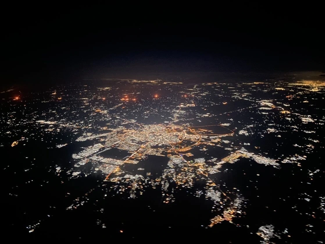 다음 날 아침에 장을 보고 도하로 비행 준비를 하였다. 돌아오는 길 굉장한 라이트 로드였다. 한국인 크루와 난 모든 크루를 위해 맛있는 아이스 카페라테를 만들어 다 같이 마시고 비행준비를 시작했다. A는 자신이 지금까지 마신 커피 중에 최고로 맛있다며 난리가 났다. 해피하게 시작해 해피하게 서비스를 끝내고 번갈아가며 콕핏(cockpit)에 가 경치를 봤다. 밤에는 도시들이 지구 위의 별처럼 빛난다.