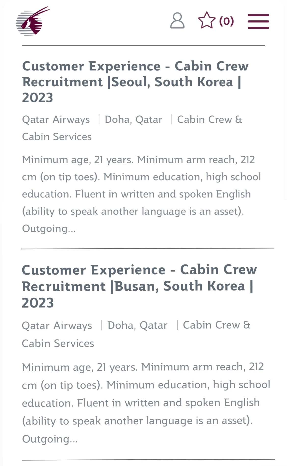 카타르 항공 서울, 부산에서 승무원 채용을 한다고 소식을 들었다.