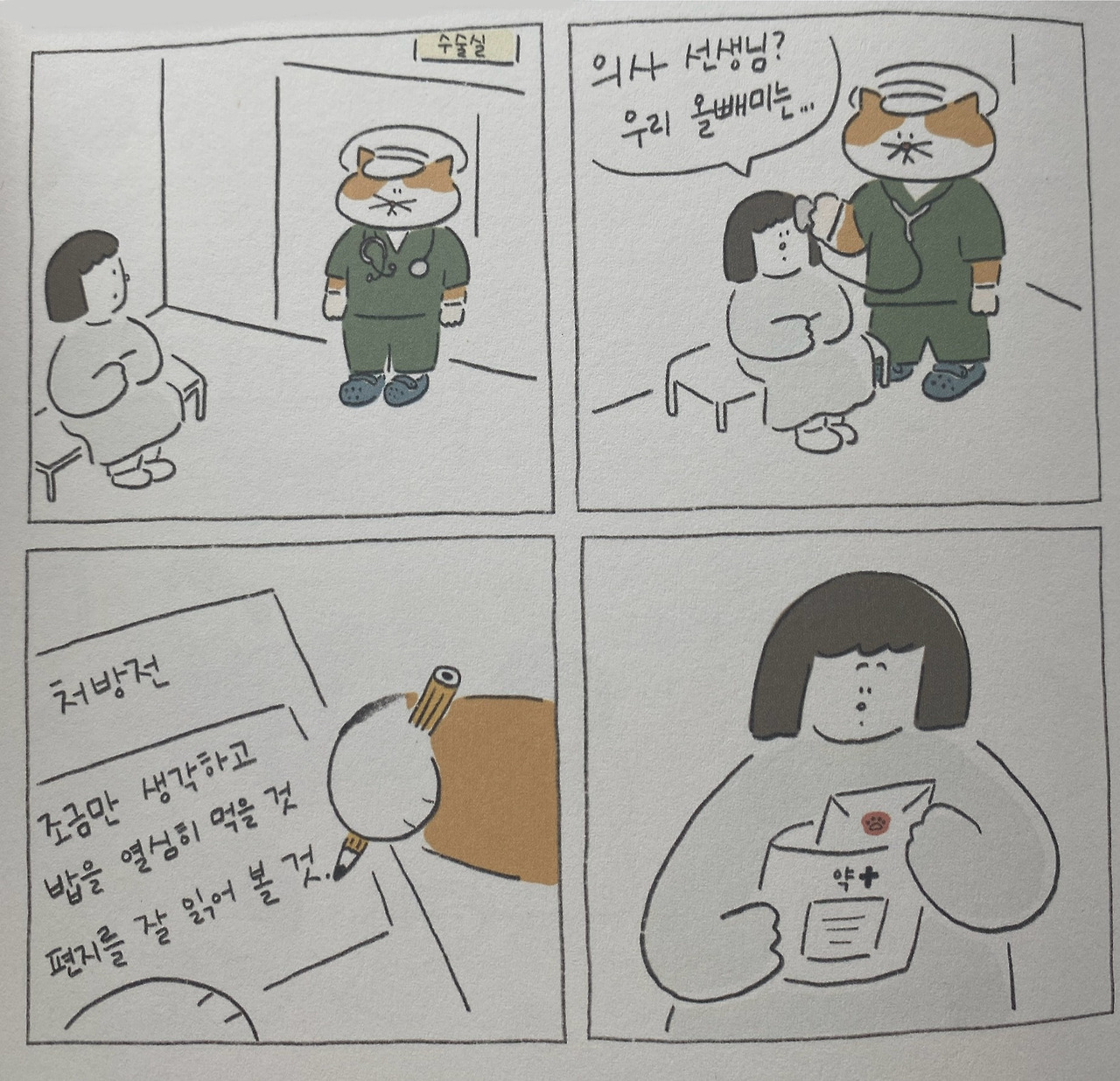 나와 나란히 앉은 딸기달 선생님이 파워포인트 화면을 한가득 채운 금동이를 사랑스럽게 바라보았다. 내 뒤쪽에 앉아 보이지 않았지만 오호호 선생님도 같은 표정을 지었을 것이다. 집에서 부장님을 기다리고 있을 삼색 고양이의 보드라운 털과 투명한 눈동자를 떠올렸다. 불편한 다리를 이끌고도 사랑하는 이에게 망설임 없이 돌진하는 작지만 큰 존재가 집에 있다고 생각하니 오호호 선생님이 한없이 부러워졌다.