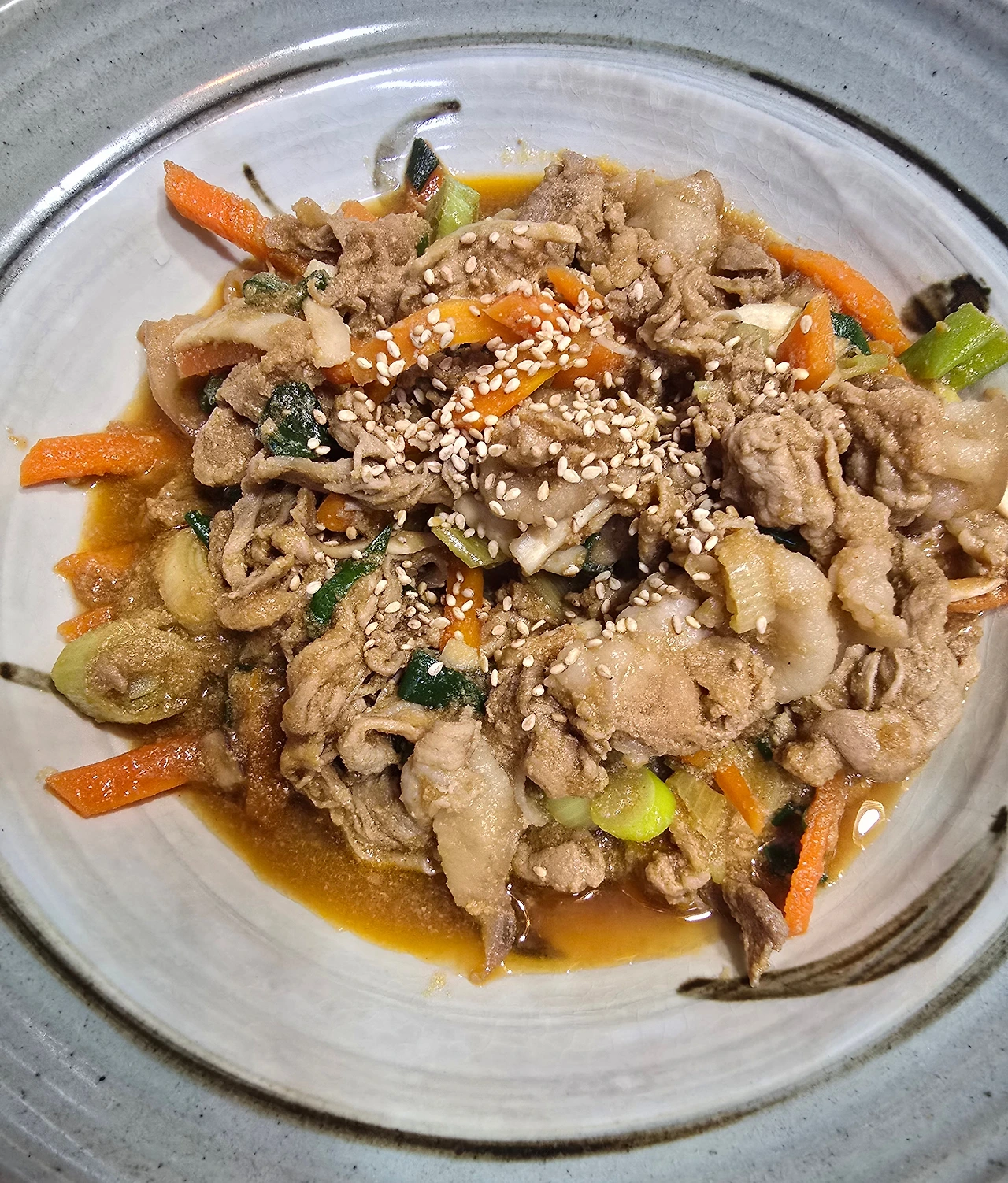 4. 가열된 프라이팬에 먹을 만큼의 불고기를 넣고 파, 당근, 버섯등 기호에 맞게 야채를 넣어 볶아 먹으면 된다. 불려둔 당면이 있으면 살짝 추가해서 넣어 먹어도 맛있다.