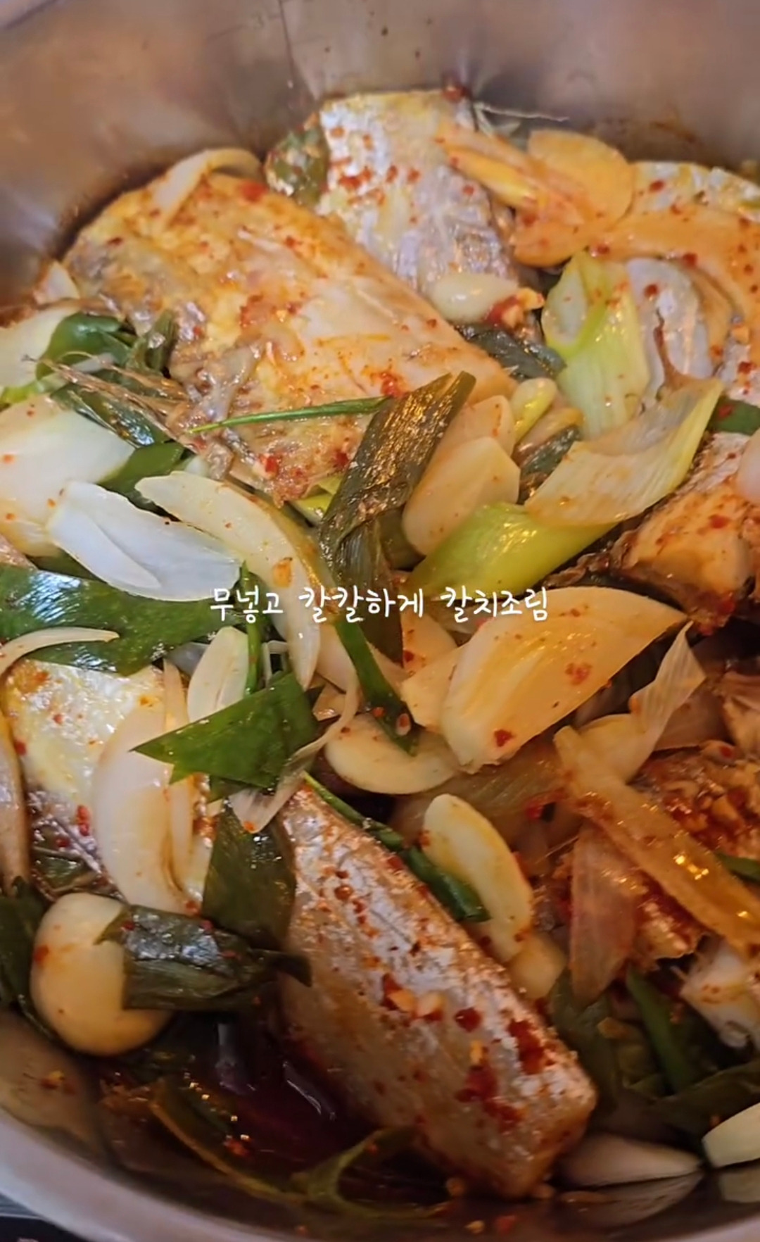 재료: 생선(갈치, 고등어, 병어등), 무 또는 감자(둘 다 넣으면 더 맛있음), 대파 두세 개, 양파 반 개~한 개(재료의 양에 따라 가감), 마늘 한 스푼
