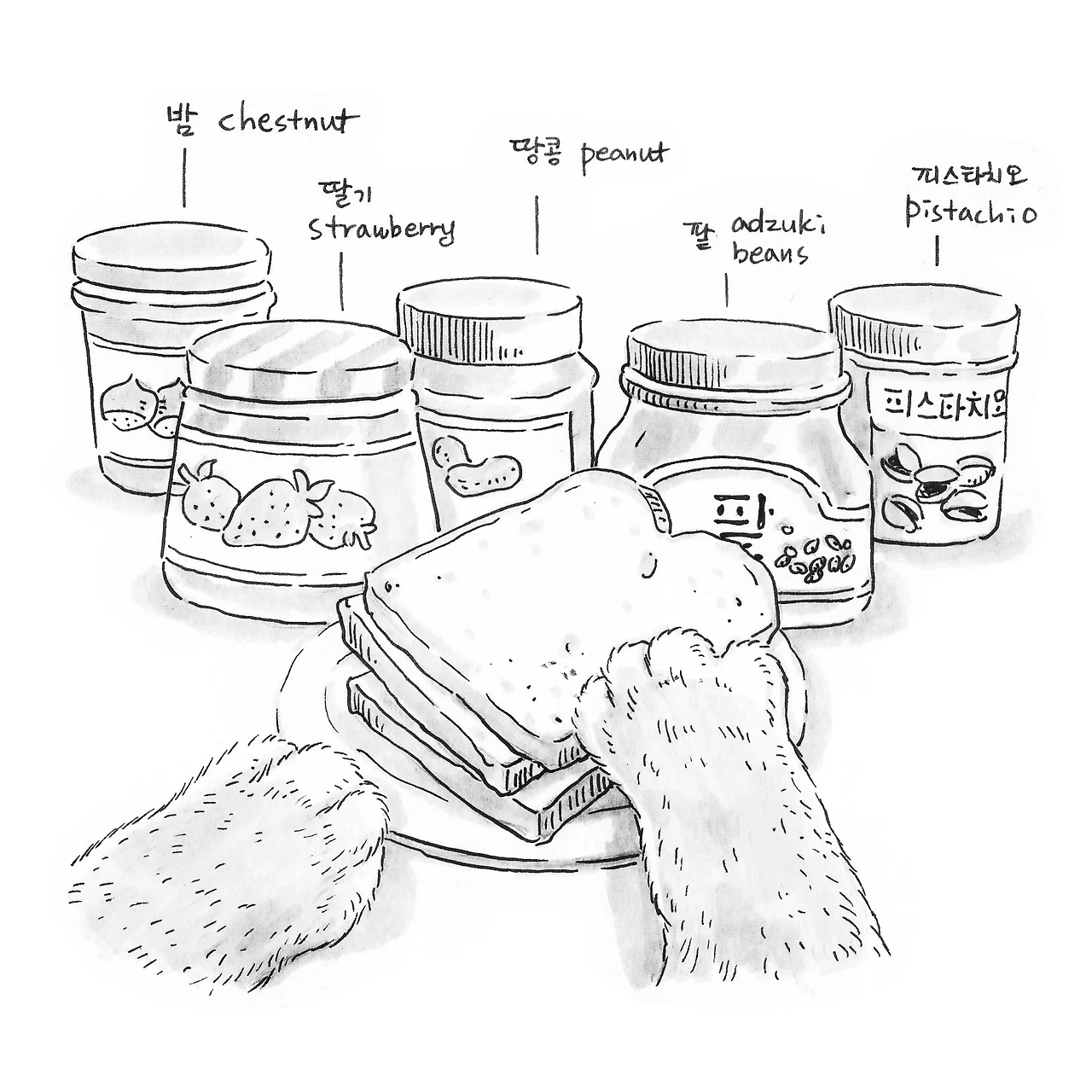 토스트 한 쪽에 쨈을 세 종류 정도는 섞어 바르는