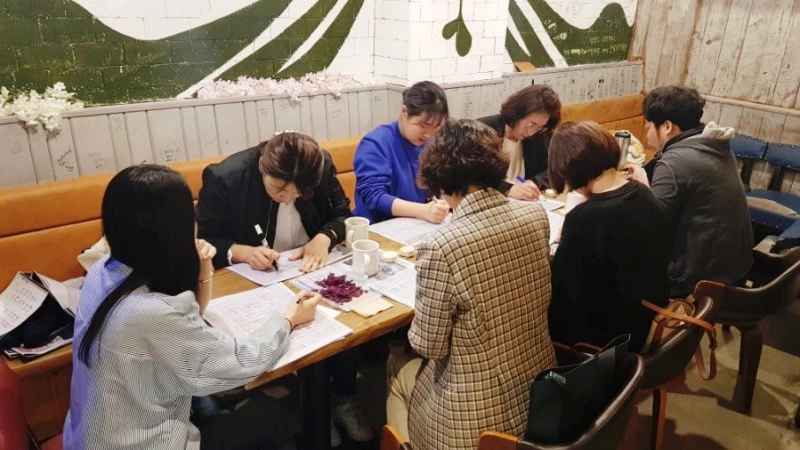 학생은 유료로 하는데 성인 분들은 재능 기부로 시작을 했어요. 교육원에서 하는 건 제가 강사로서 하는 일이니까 따로 돈을 받지는 않아요. 돈을 받고 모집을 하기에는 어려움이 있어요. 수업을 처음 알게 된 사람들은 다 [바른 글씨 로고테라피]가 뭐냐고 물어보세요. 수업을 받으신 분들은 너무 좋아하시고 또 받고 싶다고 하시거든요. 그런데 그렇지 않으신 분들한테는 수업을 설명하고 돈을 받기가 어려운 것 같아요. 힐링하고 마음을 챙기는 수업인데 이 수업을 누군가가 일부러 돈을 내고 신청해서 한다는 게 쉽지는 않은 것 같아요.