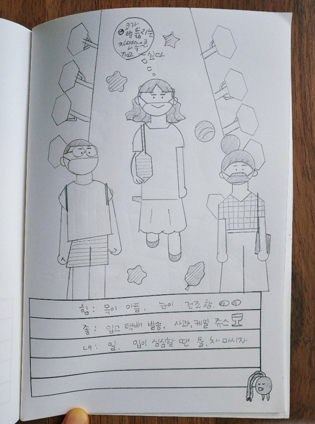 기억이 났다. 히보도 만났고, 전시할 작업물과 요즘 뭐해 같은 서로의 안부를 나눴다. 독립출판물 <그리고, 단순히>로 다 같이 한 번 모여야 하는데 그러지 못하고 있다.