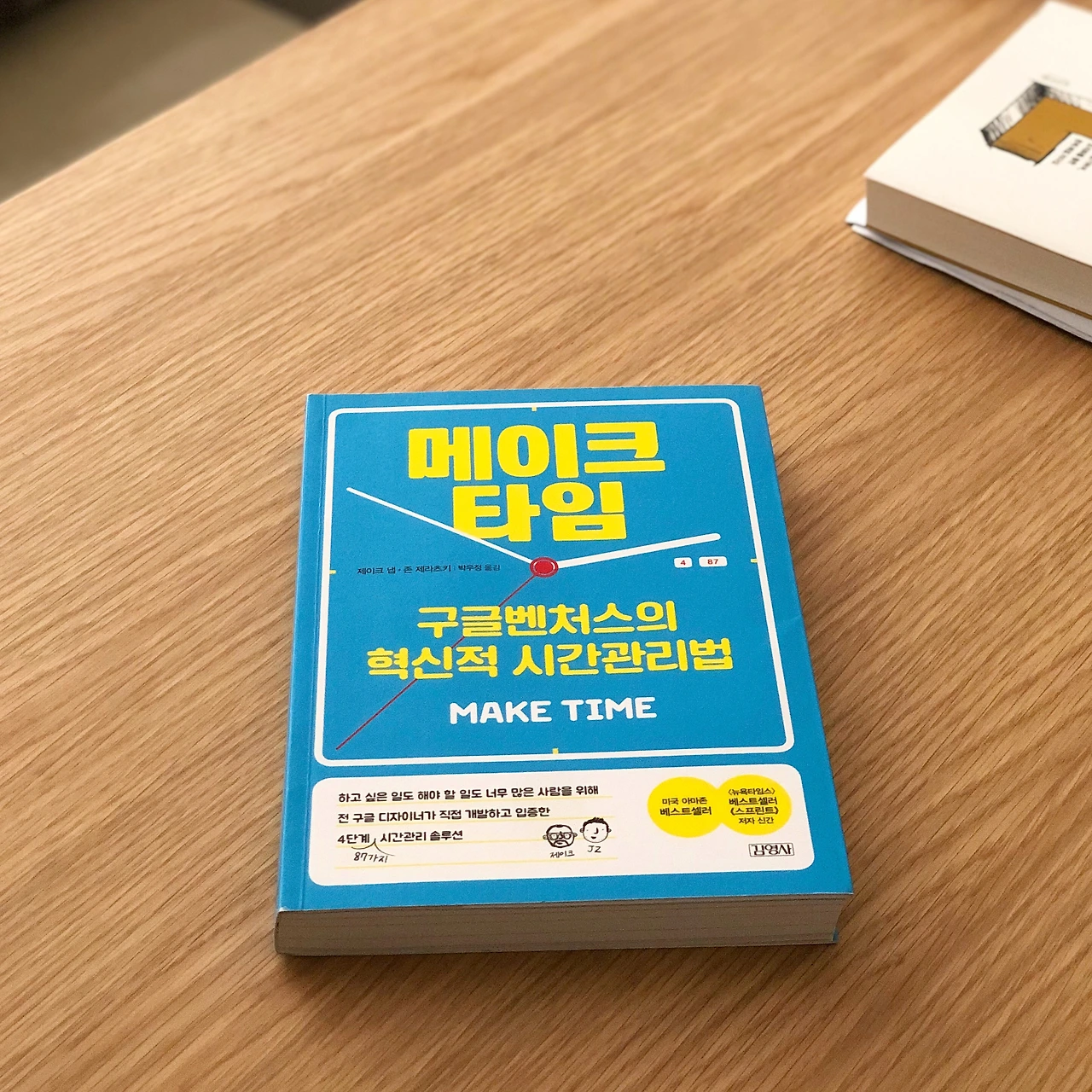 구글 디자이너들의 시간 관리 노하우를 훔칠 수 있어 즐거웠다. 그리하여 올해 하반기 가장 즐겁게 읽은 책을 꼽자면, 앞서 포스팅했던 <정리하는 뇌>와 함께 <메이크 타임>을 꼽겠다. 다양한 종류의 그리고 많은 양의 업무들로 인해 손발톱을 관리하거나 머리 자를 타이밍마저 놓치기 일쑤였던 내게, 이 두 권의 책이 여러모로 실질적인 도움을 주고 있는 것 같다고 생각한다. 물론 개인적으로는 여전히 갈 길이 참 멀긴 하다만.