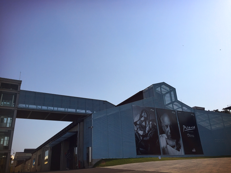 F1963으로 들어서는 오르막길. 건물의 실루엣은 똑같이 따랐으되 유리와 메탈로 옛 공장 전면부를 감싸 새로운 느낌을 준다. 전시장에서는 피카소에 대한 전시가 한창이었다.