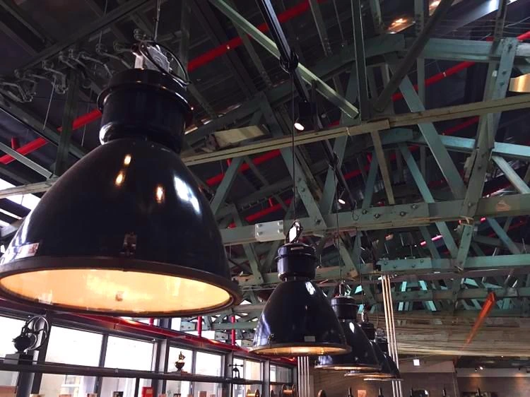 높은 천장과 한쪽 벽을 헐어 만들었을 넓은 통유리창이 탁 트인 느낌을 준다. 이 곳이 공장 건물이었음을 짐작케 하는 천장 구조와, 빈티지한 천장등이 시선을 끌었다.