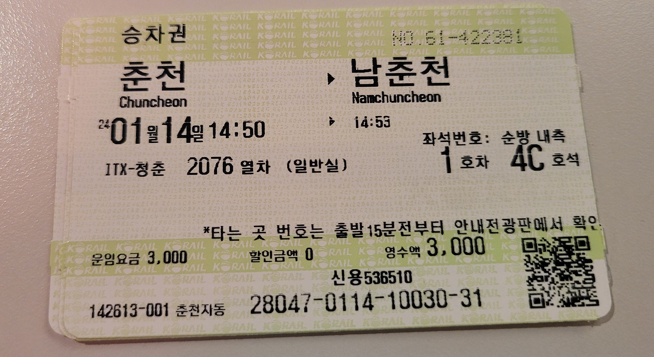 여행은 이런 게 아닐까? 내가 아무리 계획을 해도 생각지도 못한 일이 터질 수도 있다. 내가 계획한 대로 여정이 이루어졌어도 행복했겠지만 이런 준비가 무색한 상황을 경험할 수 있는 것도 여행의 재미가 아닐까 한다. 나는 이렇게 생각하기로 했다. 낚시를 못해 아쉽지만 오늘은 날이 추워 오래 할 수 없었을 것이라고. 낚시를 마치고 운전하면 피곤하고 빙판길이라 신경이 많이 쓰였을 텐데 버스를 타고 마음 편하게 화천을 빠져나올 수 있어 다행이라고. 울거나 투정 부리지 않고, 작은 기념품과 붕어빵에 기뻐하며 춘천 가는 버스 안에서 지루한 시간을 잘 기다려준 아이들에게 고맙다고. 무엇보다 캐리어를 끌고 남춘천역 상륙 작전을 진두지휘한 남편에게도 고맙다고 말이다(작전장교였던 사람이랑 결혼한 나도 복도 많지).