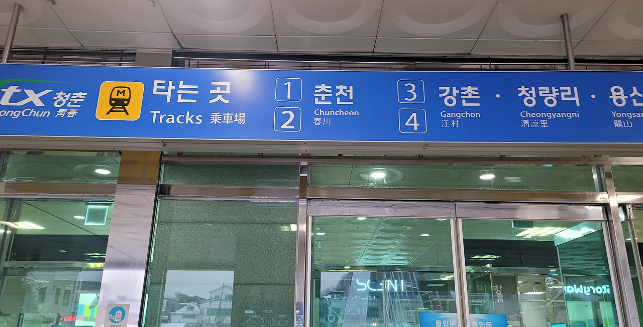 "나도 방금 출발했어. 버스 타고 남춘천역으로 가."
