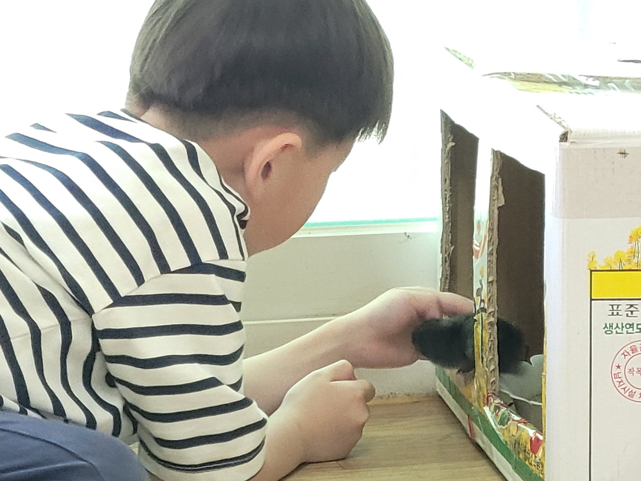 아이들은 두 손을 포개 잡고 병아리를 창고방으로 데리고 왔다. 그리고는 어떤 이름을 지어줄지 모이는 뭘 주고 물은 어떻게 담아야 할지 고민했다.