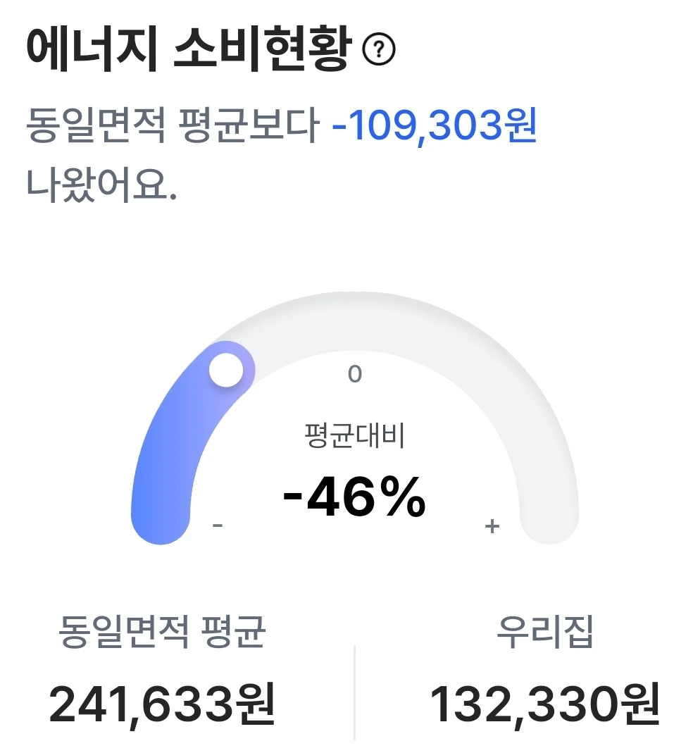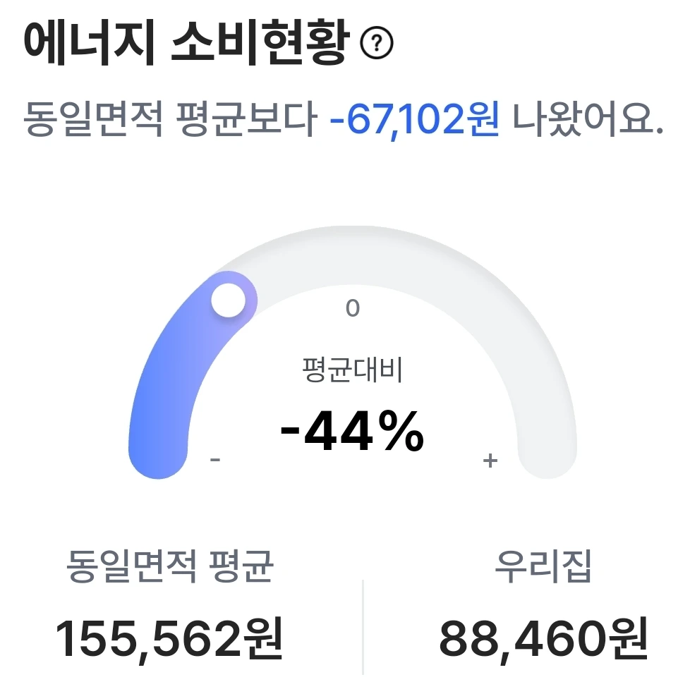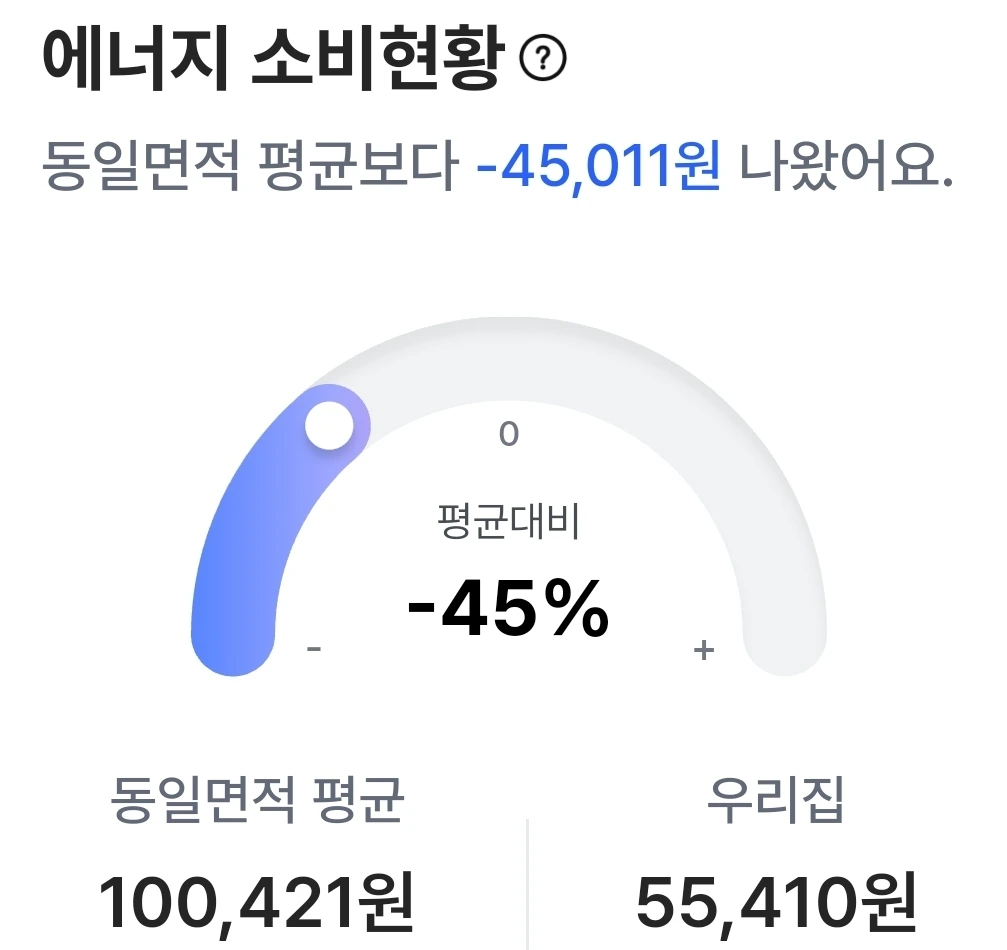 저희 아파트는 전 세대 면적이 동일합니다. 5월의 에너지 사용료 평균은 10만 원가량인데 반해 저희 집은 5만 5천 원입니다. 평균대비 -45% 적게 썼고. 약 4만 5천 원 차이가 납니다. 언뜻 보면 얼마 안 되는 금액이지요. 하지만 12를 곱해보면 생각이 달라지지 않나요? 게다가 여름과 겨울의 에너지 사용량 또한 차이가 큽니다.
