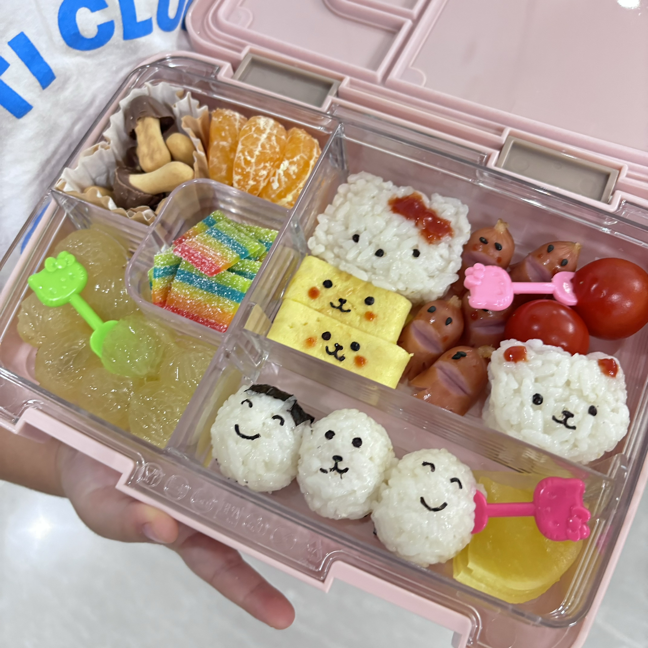 내 딸아이의 도시락에는 아이가 좋아하는 계란말이와 문어 소시지, 키티 주먹밥을 넣었다.