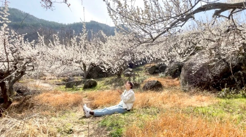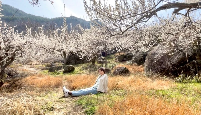 꽃길을 걷다가 너무 기분이 좋은 나머지, 잠시 매화나무 아래에 앉아서
