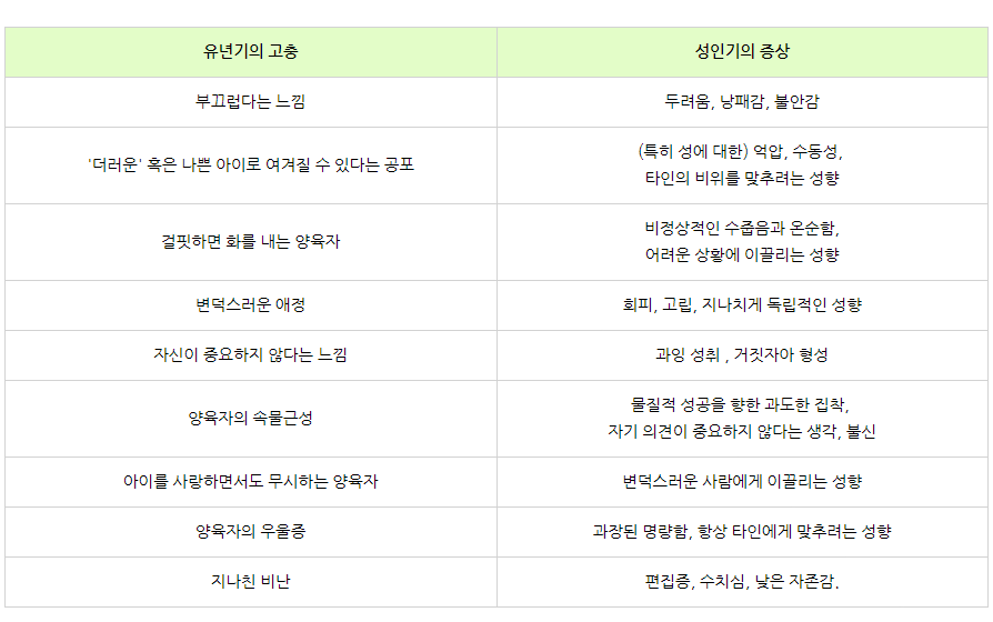 이러한 감정들은 해결되지 않는다면, 안타깝게도 우리가 성인이 되어서도