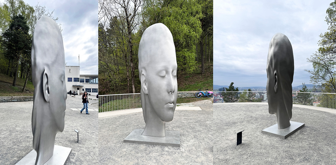 여기 언덕 위에서는 구름 가득한 하얀 하늘과 피오르 해안선, 오슬로 시내가 한눈에 내려다보인다. 저 멀리 뭉크미술관도 보인다. 이 언덕에서 뭉크는 무엇을 바라봤을까 상상해 본다.