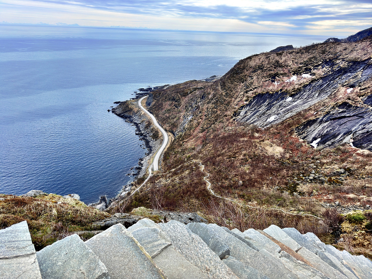 마을 근처에 주차를 하고 레이네브링겐 트래킹을 시작한다. 470 M, 가파른 산비탈에 900개의 셰르파 계단으로 만들어졌다는 이 트래킹은 레이네브링겐 정상에서 바라본 경치가 어마어마하다는 루트로 유명하다. 한 계단 올라설 때마다 계단 옆으로 아찔한 낭떠러지와 먼바다가 나를 오싹하게 만들었다. 가도 가도 끝도 없는 계단이 쉬지 않고 이어졌다. 정상에 가까워질 때부터 먹구름과 세찬 바람이 몰려와 나를 흔들었다. 하산하는 사람들의 엄지 척과 어매이징한 풍경에 대한 찬사가 없었다면 중간에 멈추지 않았을까.