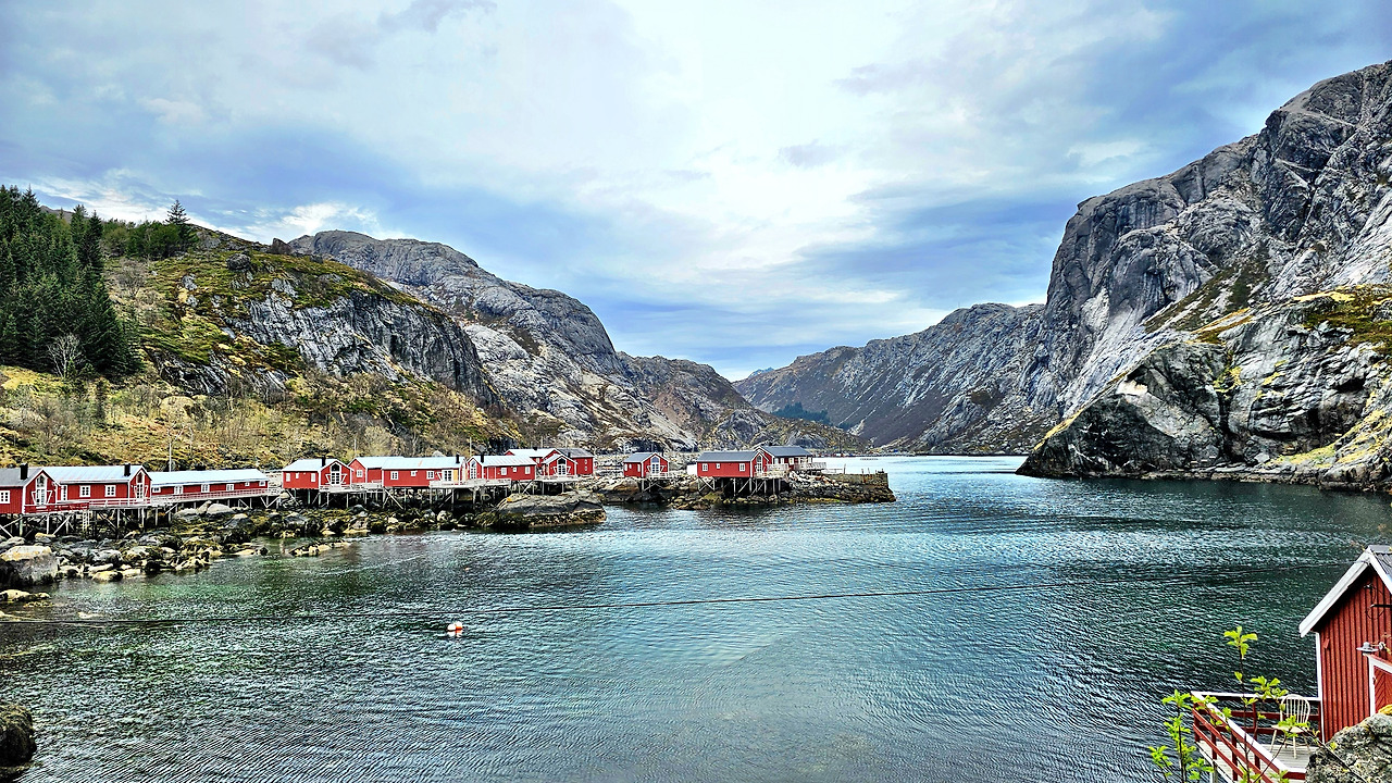 숙소인 어부의 집, 퍼부어 Rorbuer에 도착해 짐을 푼다. 빨간색 나무로 물 위에 지어진 로부어는 원래 겨울 동안 북극 대구를 낚시하기 위해 이주한 어부들이 살던 전통적인 오두막으로 고기잡이 산업이 점점 쇠퇴하면서 대부분 관광용 숙소로 개조되어 과거의 매력과 현대 호텔의 편안함을 모두 가지고 있다.