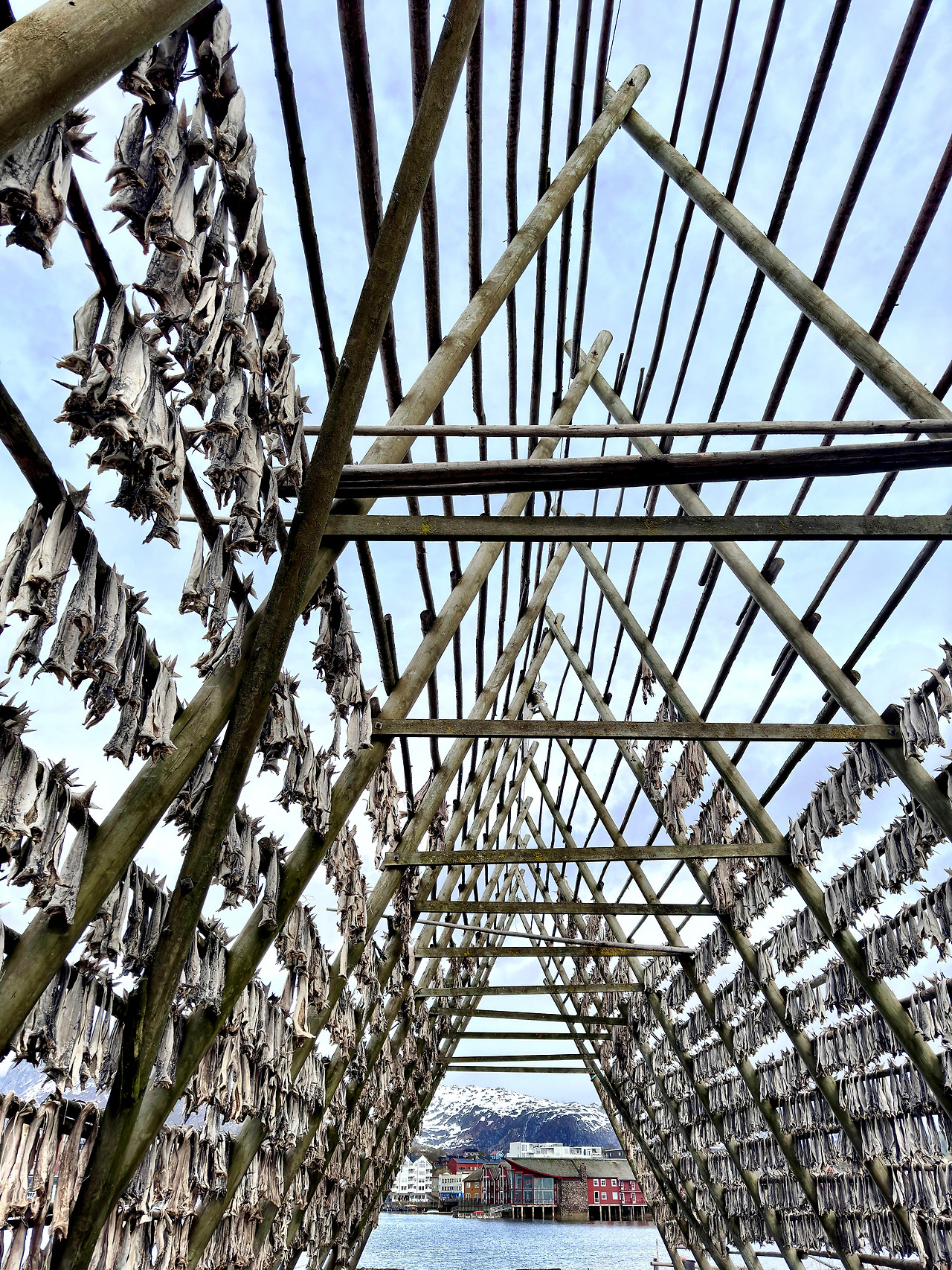 스볼베르 끝에서 대구 덕장을 발견했다. 이번 여행에서 노르웨이는 연어보다 대구가 풍부한 맛을 가졌다는 생각을 하게되었다.
