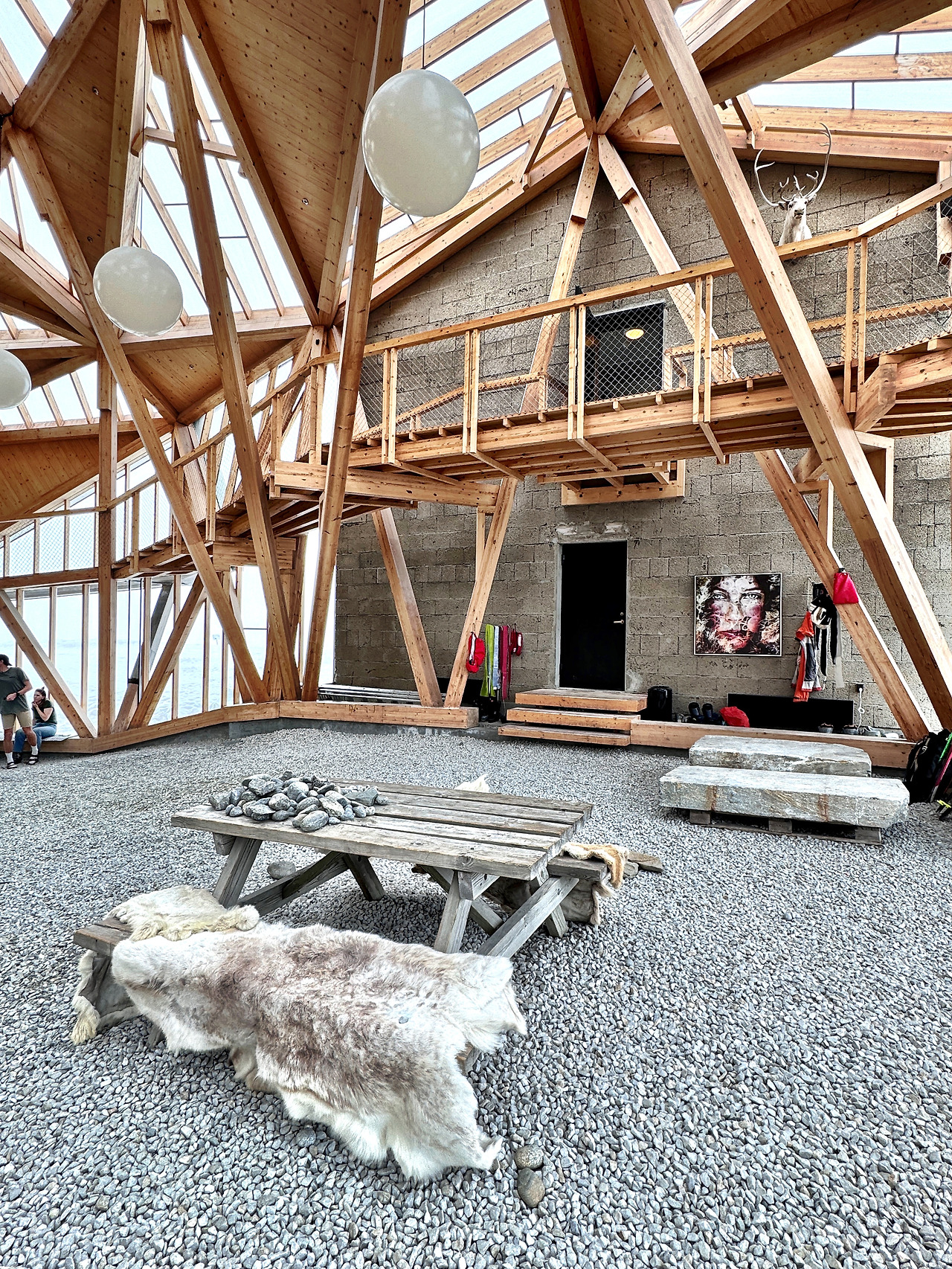 마치 겨울을 다시 만난 듯한 날씨 속에 한참을 달려 해발 1,400m의 가장 높은 지점에 위치한 소그네펠시타 Sognefjellshytta에 도착했다. 소그네펠시타 로지는 숙박이 가능한 시설과 Sognefjellet 여름 스키 센터가 있어 겨울과 여름에 전문 스키 훈련이 가능하다고 한다. 높이 쌓인 눈더미 속에 파묻혀 반쯤 모습만 드러낸 채 나무와 유리로 된 창을 통해 밝은 빛이 들어오는 따뜻한 휴게소에서 아름답고 험한 눈보라도 피하고 휴식을 취하기로 했다.