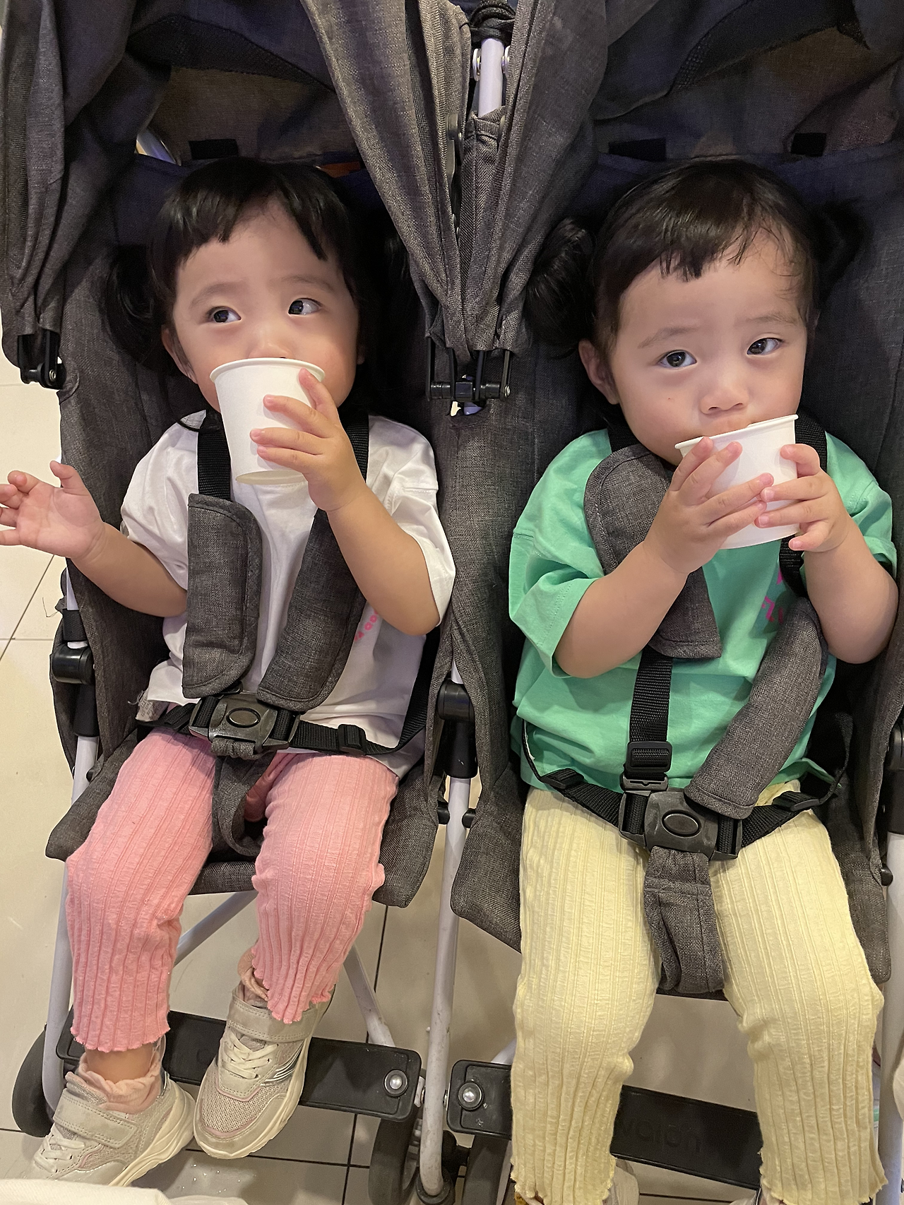 감사하게도 그 정신없는 와중에 아이들 진정시키라고 다른 아이의 엄마가 와서 웨하스 두 개도 건네주시고, 어떤 할머니가 오셔서 둘째를 달래 보겠다고 하시기도 했다. 엄마 품에서 안 달래지는 아이가 낯선 할머니 품에서 진정될 리 만무하겠지만, 엄마 힘들다고 아가야 도와주라고 하시는 말씀에 울컥 눈물이 날 것 같았다. 아이가 우는 게 엄마 죄는 아니지만 그 순간만큼은 그 공간에서 내가 죄인이 된 것 같은 기분이었다. 아이 둘이 같이 울어대니 안 쳐다보는 사람은 없었고, 한 아이는 진정이 안 되고 더 크게 울어대니 다들 우리만 주시하고 있는 것 같았다. 진땀도 이런 진땀이 없었다. 땀과 눈물샘은 같은 곳에서 나온다던데 땀만큼은 아니지만 눈물도 딱 그 1/10 만큼 고였다가 들어갔던 것 같다. 울고 싶었지만 울 수 없는 상황이었다.