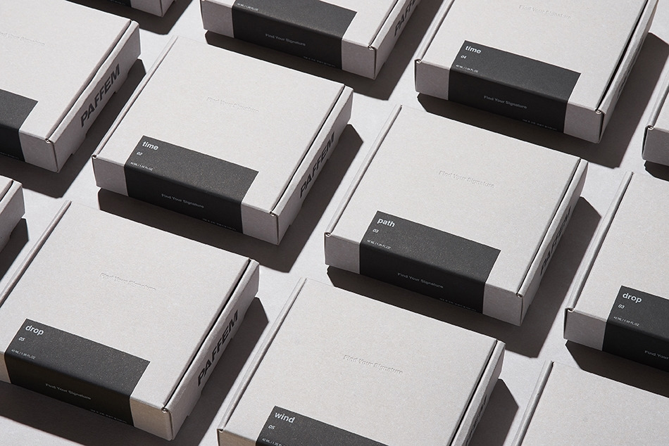 그리고 많은 향수 회사들이 그들 입장에서 생각한 향에 대한 느낌을 패키지 디자인에도 적용하는데 오히려 고객의 상상력을 떨어뜨린다는 생각하였습니다. 파펨의 패키지는 특정 향이 느껴지지 않아 향에 대한 편견을 가지지 않고 오로지 고객이 직접 경험하고 느낄 수 있기를 바랐습니다.