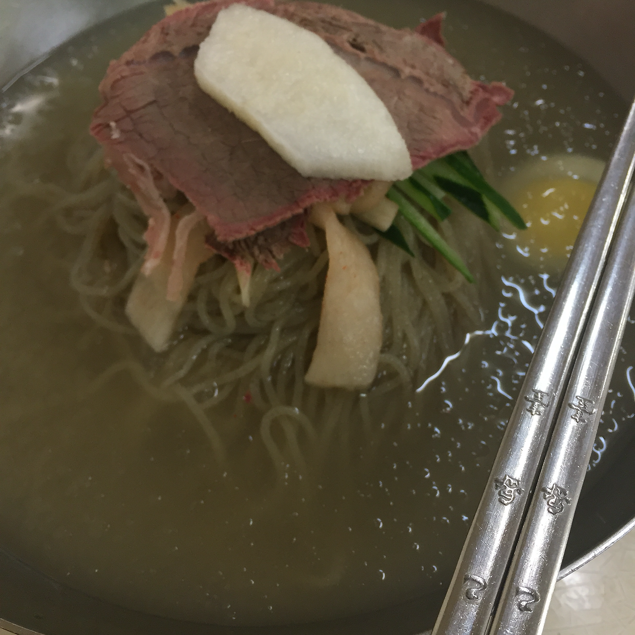 쟁쟁한 평양냉면 집 들 중에서 난 을밀대를 제일 좋아하는데, 우리 집에서 가깝다는 홈코트의 이점이 있기도 하지만, 난 이집의 도톰하고 씹으면 씹을수록 고소한 그 맛이 좋다. 작년 봄/여름/가을만 해도 줄이 너무나도 길어서 갈 엄두가 나지 않았으나, 요즘 형제의 난 이후 조금 한가해진 분위기. 녹두전도 꼭 함께 먹을 메뉴!