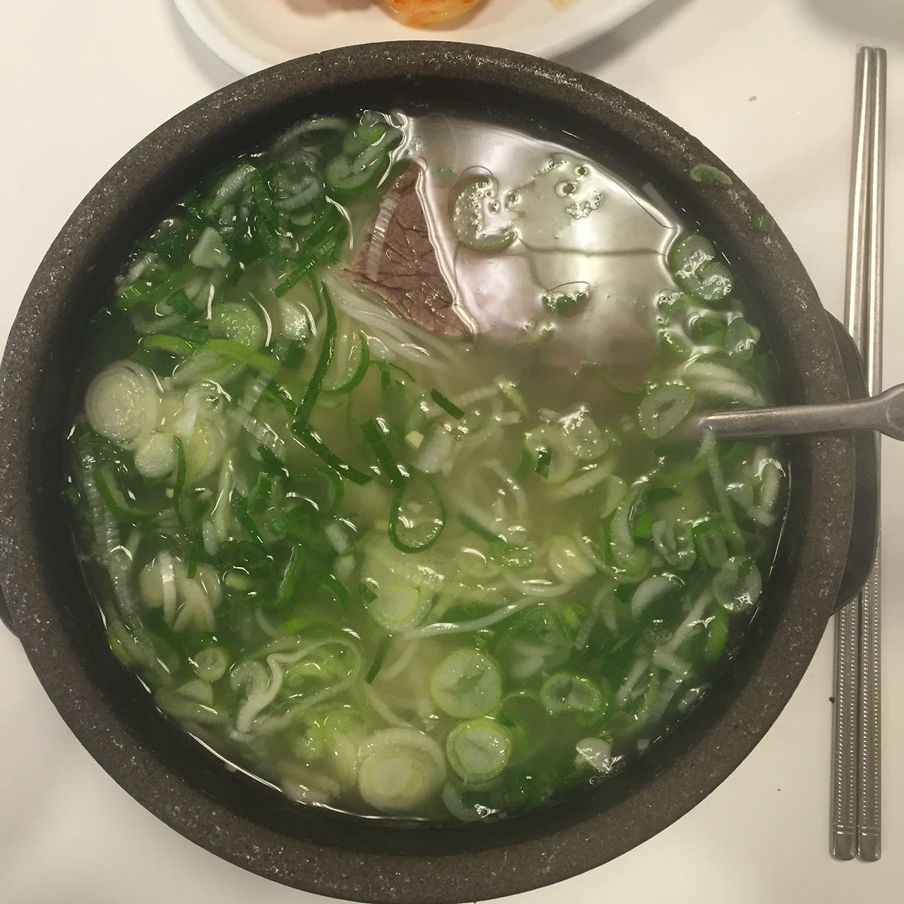 마포옥은 꽤나 오래된 설렁탕 집이다. 이집의 설렁탕의 특징은 양지로 끓여서 다른 집처럼 뿌연 국물이 아닌, 맑은 스타일의 국물을 준다는 점이다. 국물을 한 입 먹으면, 아.. 고기 국물로 낼 수 있는 맛 중에 높은 수준을 이룬 집이구나 라는 생각과 함께 이건 보약 수준의 음식이라는 느낌이 든다. 단, 첨엔 그 맛을 모를지도 ㅎㅎ