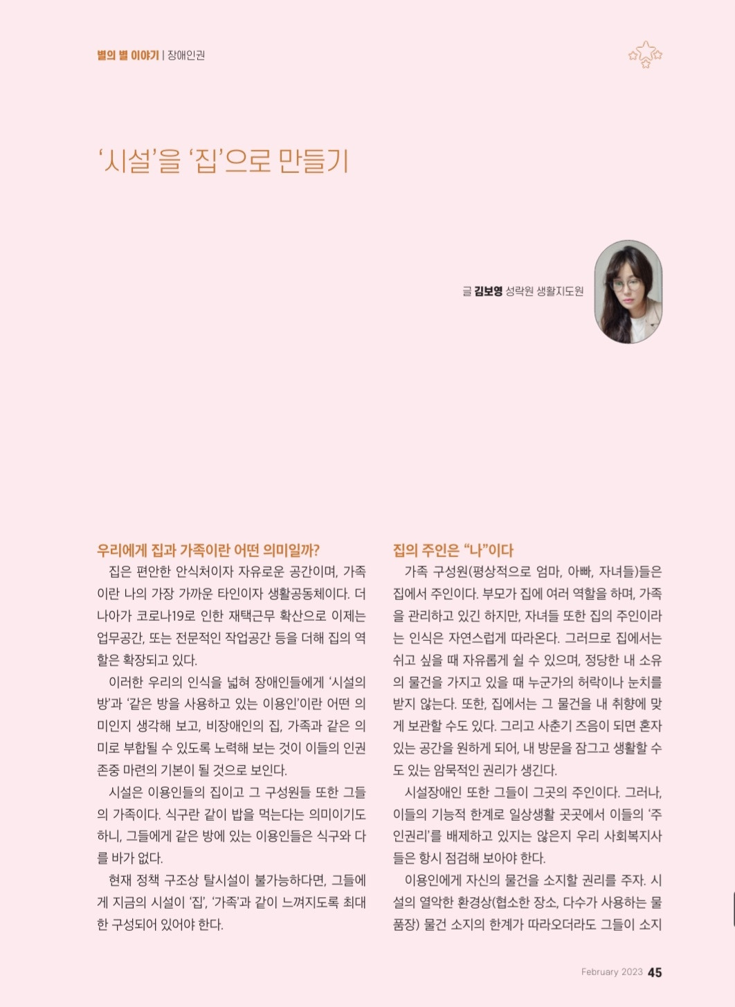 "월간[소셜워커] '2023년 2월호 '별의별이야기'에