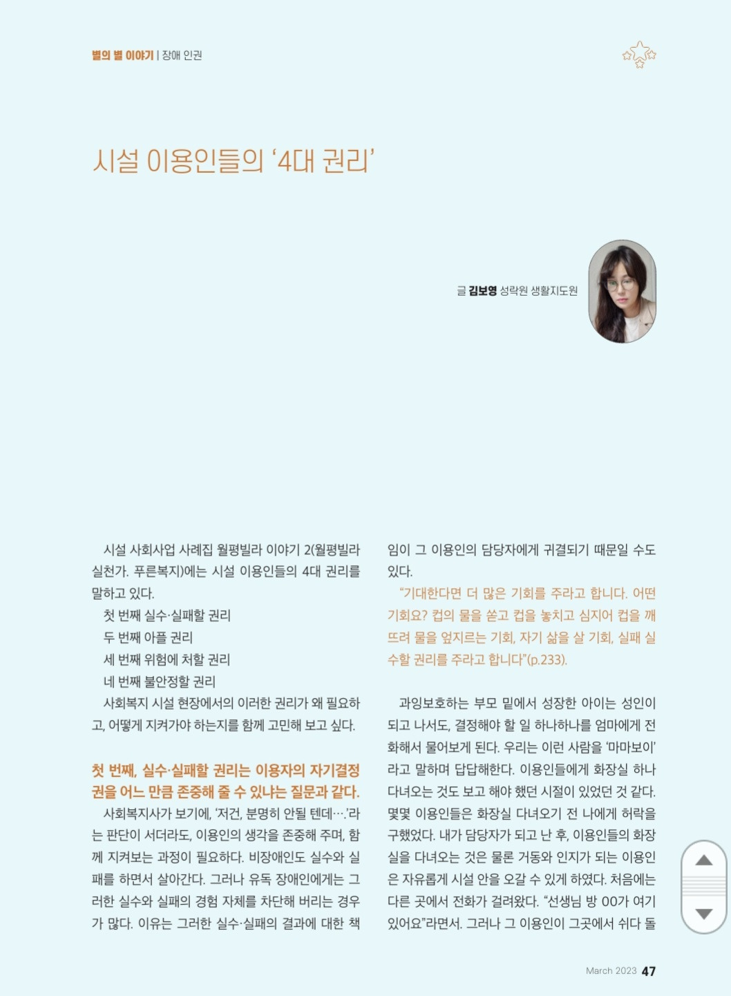 "월간 [소셜워커]" 2023년 3월호 '별의별이야기'에