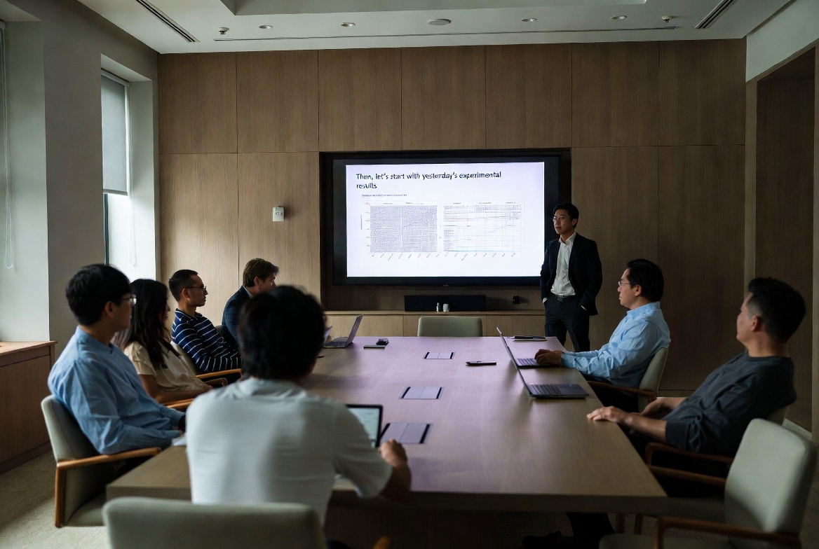 누군가는 의자에 등을 더 깊이 기대었고, 누군가는 노트북을 닫았다. 그 반응을 보며 깨달았다. 나는 지금 속도를 늦추는 사람이 되고 있었다. 연구원들은 속도와 확정되지 않은 시험임을 이야기했다.