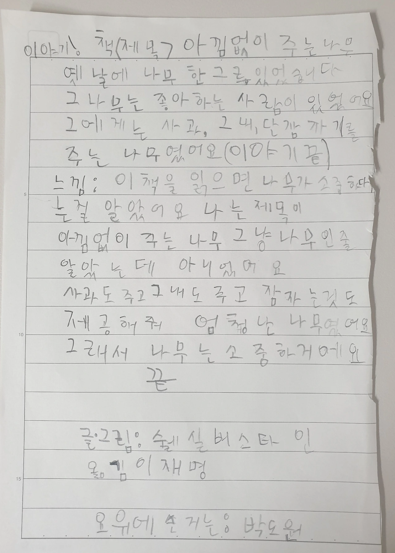 이 책을 읽으며 나무가 소중하다는 걸 알았어요.