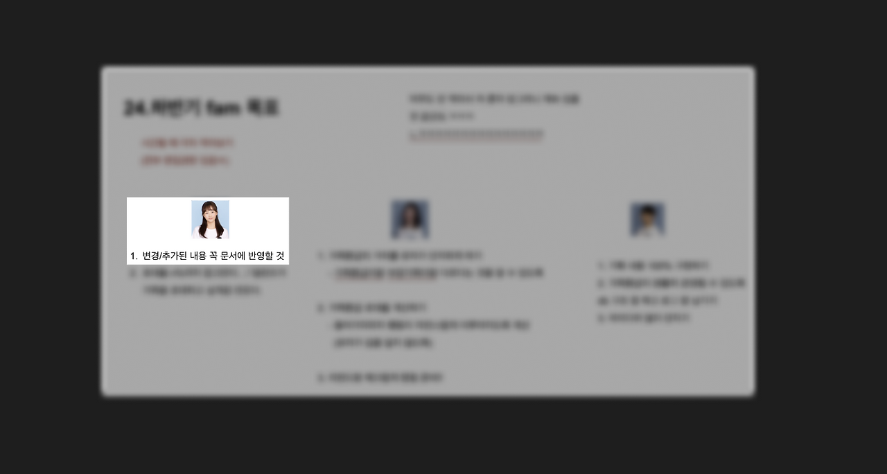 그래서 하반기 저의 액션 아이템은 아무리 사소한 기획 변경이라도 문서에 업데이트하는 게 목표이고, 고쳐지지 않으면 회고 때마다 피드백을 부탁드린다고 요청했습니다. 요청사항을 꼭 지키려고 기획서 맨 앞장에 목표까지 적어두었습니다.