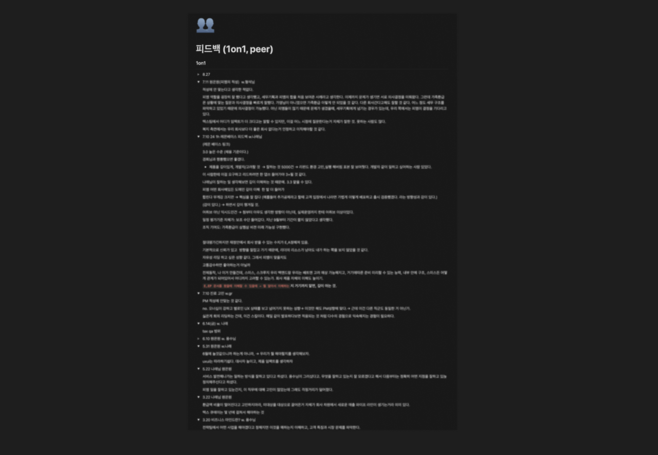 2주마다 PM리더와 1on1 미팅을 통해 피드백을 주고 받습니다.