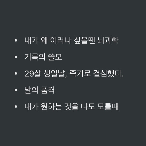 추천 이유과 함께 독서에 관심이 많은 친구들에게 전송했다. 글 뿐만 아니라 같은 영상을 보고 나와 다른 의견을 제시할 수 있다. 이를 비판과 비난으로 받아들이는 것이 아니라, 다른 방향으로 사고의 확장할 좋은 기회라고 생각을 전환했다. 내 생각이 다양한 정답 중 하나라 되뇌였다.