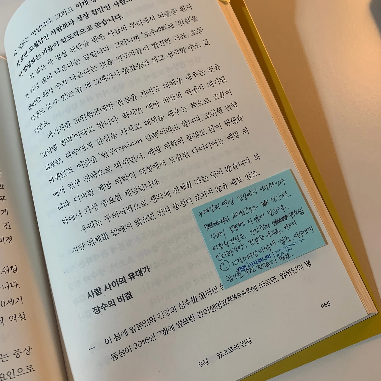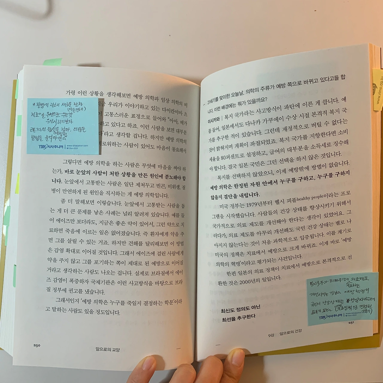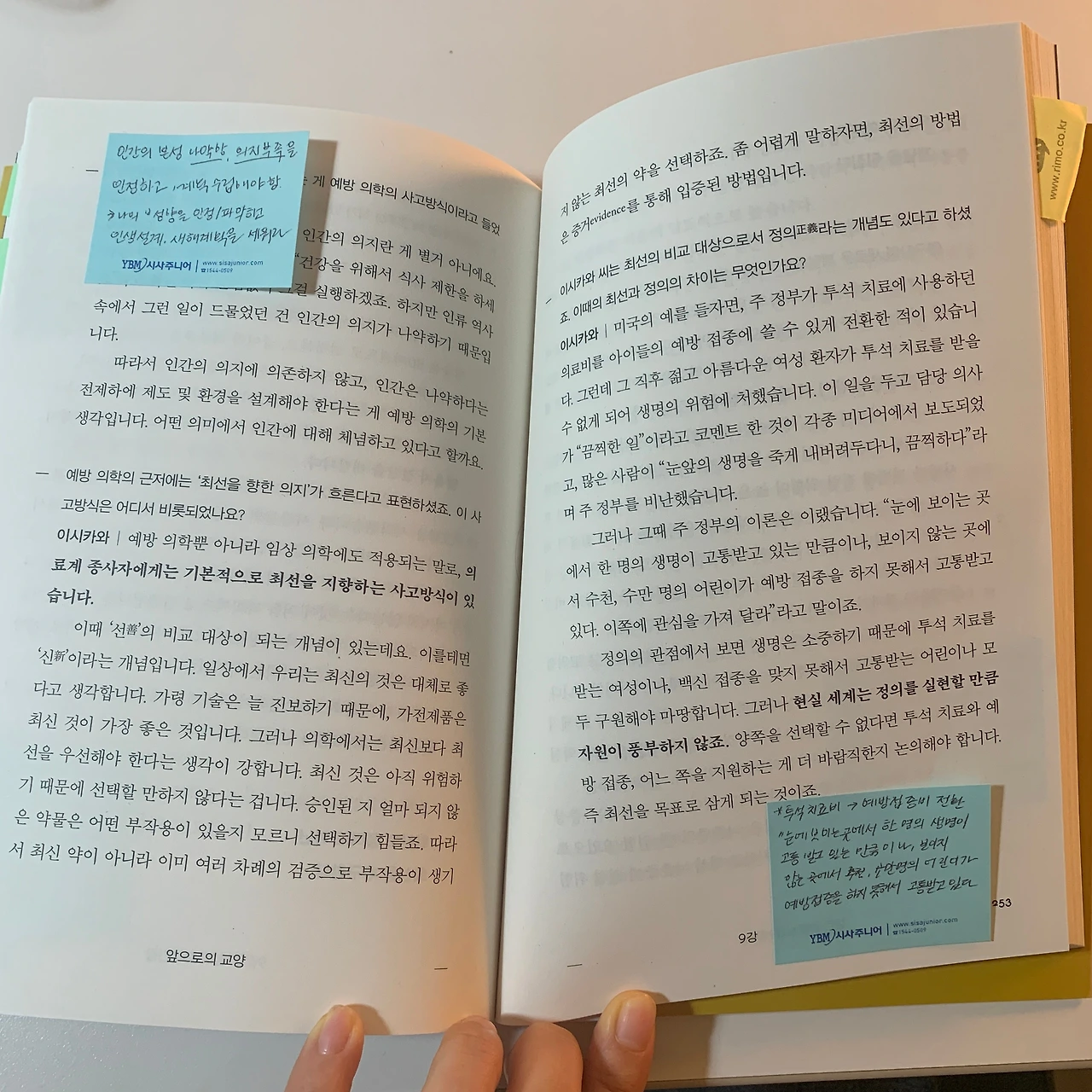 말 잘하기의 기본은 다독이라고 말하는 유시민 작가의 주장과 서울대 문학 수업방식을 착안하여 지금 읽고 있는 책의 내용을 요약하기 시작했다. 깨끗하게 책을 읽기 때문에 포스트잇을 활용하여 저자가 주장하는 바를 나의 언어로 기록했다. 특히 정보 양이 많은 비문학 책의 경우 내용 구성과 작가의 의도가 머릿속에 전개도로 그려졌다.