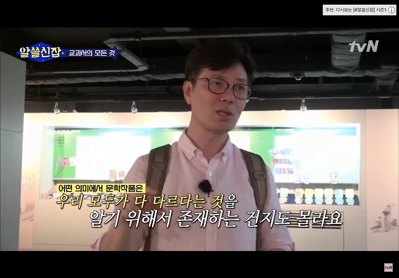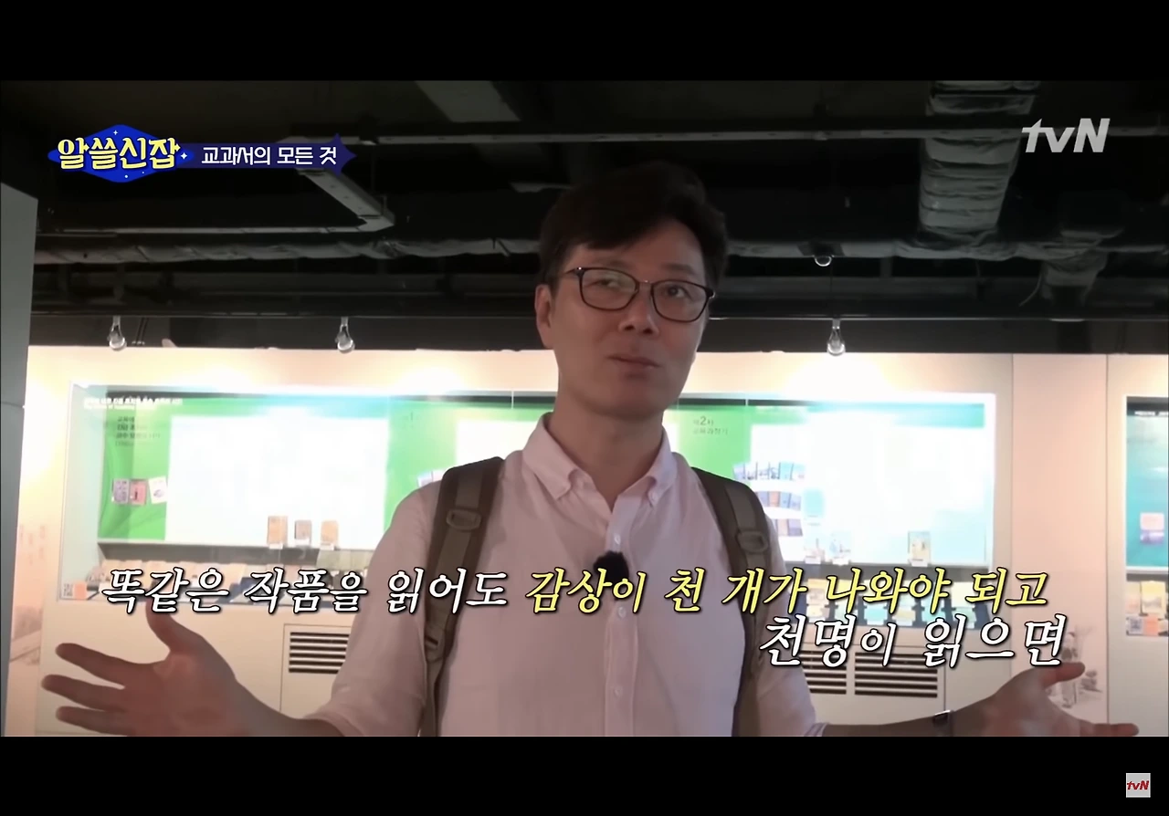 이러한 질문은 '알쓸신잡'에서 김영하 작가가 대답해주었다. 김영하 작가는 같은 책을 읽지만 독자에 따라 제각각의 영감과 생각을 한다. 따라서 다양한 문학 감상을 받아들이는 것이 문학 교육의 본질이라고 말한다. 내가 문학을 읽고 느낀 감상을 논리적으로 말이 되도록 이야기하면 된다고 한다. 감상에는 정답이 없으며, 읽는 사람마다 다 다른 것은 지극히 정상이었다. 책 한 권을 100명이 읽으면 100명의 다른 감상문이 나오며, 다른 부분에서 영감과 인사이트를 받을 수 있다는 것이다.