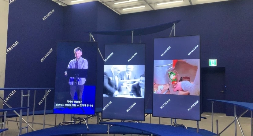 그런 중에 국립 현대미술관에서 진행 중인 전시 ‘히토 슈타이얼 - 데이터의 바다’에서 ‘미션 완료: 벨란시지 (2019) 강연 퍼포먼스 작품을 접하게 되었다. 이 작품은 독일 장벽 붕괴 이후 경제적 불평등과 국제적 사영화(민영화)를 다룬 ‘미션 완료: 벨란시지 (2019) 강연 퍼포먼스 작품이다. 작가 슈타이얼이 직접 등장해 메시지를 전달한다. 뎀나가 베트멍Vetement에서 패션 정치를 실험했던 것부터 발렌시아가가 어떤 방식으로 ‘빈곤의 사유화’를 하고 있는지에 대해서 화두를 던진다. 내 삶의 화두인 소비와 패션에 대한 생각을 확장한 경험이었다.