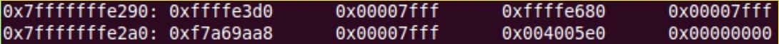 앞선 섹션에서 디버그 단에서 메모리 상태를 확인하는 명령을 치면 아래와 같은 화면이 나온다(명령어 x/16xw $rsp).