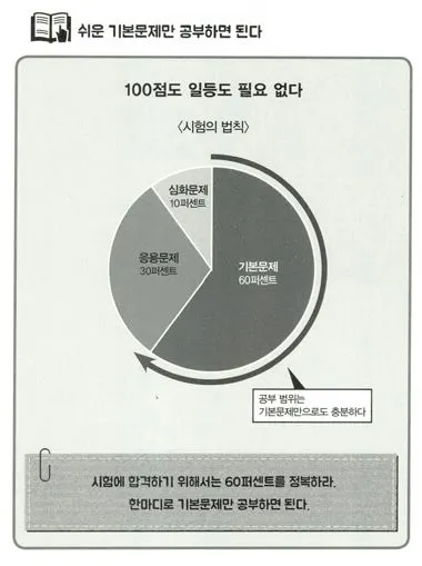 그럼, 어디에 포커스를 맞춰야 가장 효율적일까? 뒤의 30%나 10%는 회차마다 조정되기 때문에 이런 의도의 문제에 처음부터 휘둘리지 않고, 앞서 말한 60%의 기출문제의 내용에 포커스를 두고 시간이 난다면 나머지 문제 유형을 확실히 수렴하는 게 수험 요령이다.